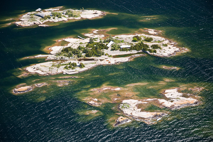 A quintessential Georgian Bay archipelago, comprised of two western oriented islands, now joined in low…