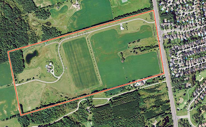 The elevated lands with views over the Town of Aurora are rolling in nature and a second residence was created near the gated entrance. The Gate House is currently divided into a 3 bedroom apartment and a walk-out 2 bedroom apartment. The property spans approximately 100 acres and includes a professionally designed and manicured polo field with raised viewing Pavilion.