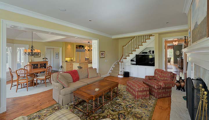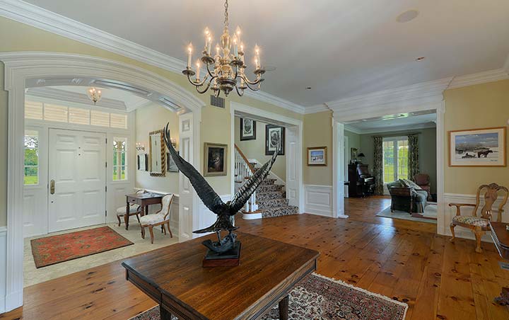 The Main Foyer was designed with entertaining in mind and links the Family, Living Room, Bar and Dining Room as well the outdoor spaces including the Screened Porch, pool and Terraces. A wonderful use of space.