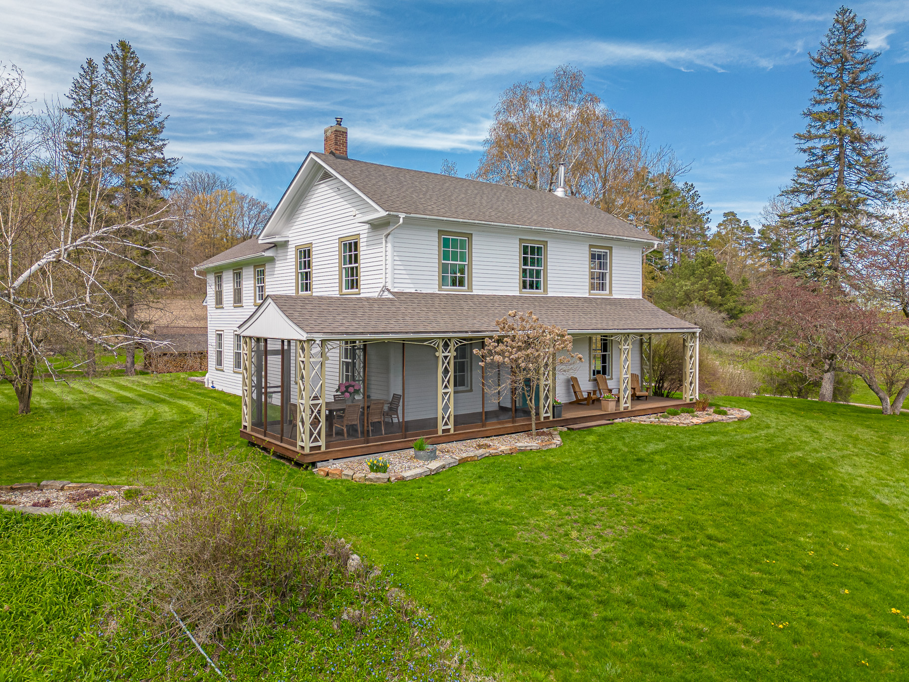 A classic feature of early Ontario farmhouses is their expansive front porch. This wrap-around porch is made from Ipe wood which is considered the finest wood for decking given its extreme hardness. Ipe has up to 3x as much hardness as teak! The Ipe deck spans the entire front façade and wraps around the west side of the home. About one half of this large deck is screened which creates a wonderful summer dining room.
