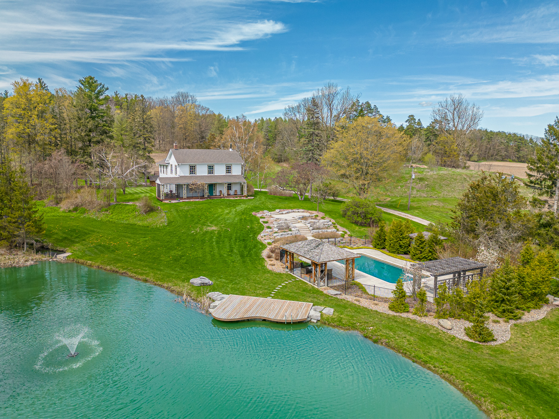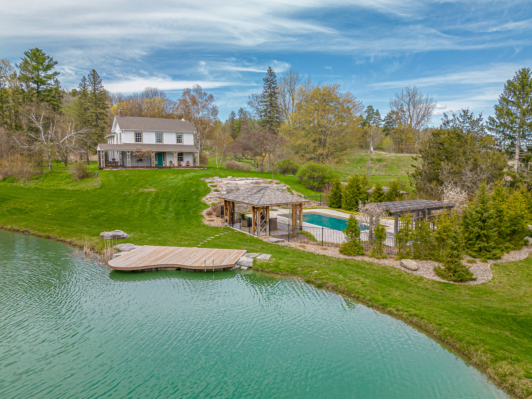 An elegant country home set on an original 100-acre lot just north of Schomberg. Down a long drive sits this renovated 4+ bedroom, 3 bath residence with its own 2 bedroom, 1 bathroom apartment over the garage joined to the house by a breezeway. Noted architect, B. Napier Simpson Jr. oversaw the restoration of this circa 1856 home. The home is located on a rise to overlook the crystal-clear pond, country gardens and pool. Come enjoy hiking the miles of trails, enjoy the solitude of nature and yet be minutes to the towns of Schomberg and Tottenham in the hills of New Tecumseth.