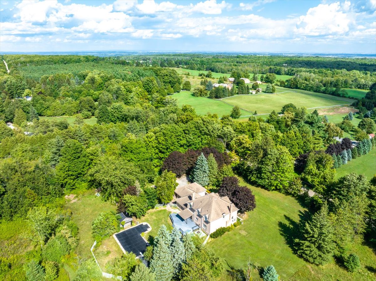 Prime corner acreage on the best road in Caledon surrounded by some of the finest estates! Placed on a rise overlooking the 8+ acre property. 4+2 bedroom home. Potential for separate suite in lower level with its own entrance. Large kitchen, family & dining rooms span the entire north side of the home overlooking the fenced pool area & grounds.