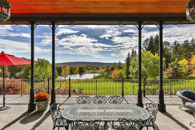 The sprawling compound offers its owners and their guests an impressive array of pursuits including trout fishing, swimming, tennis, snowshoeing, pond hockey, hiking, biking, gardening, plus nearby riding, golfing, and skiing. The property includes room for a car collection and has its own private wine warehouse – a collector’s haven. The main house and related outbuildings can host an impressive number of guests to enjoy all these pursuits in a beautiful natural environment. The property attracts an impressive array of wildlife from wild turkeys to deer to waterfowl and an inspiring mix of song birds. All the wildlife is attracted to the custom feeders placed between the main terrace and the trout pond below. The property is also known for its organic on-site produced maple syrup. There is also room for a full horse facility if one desires.