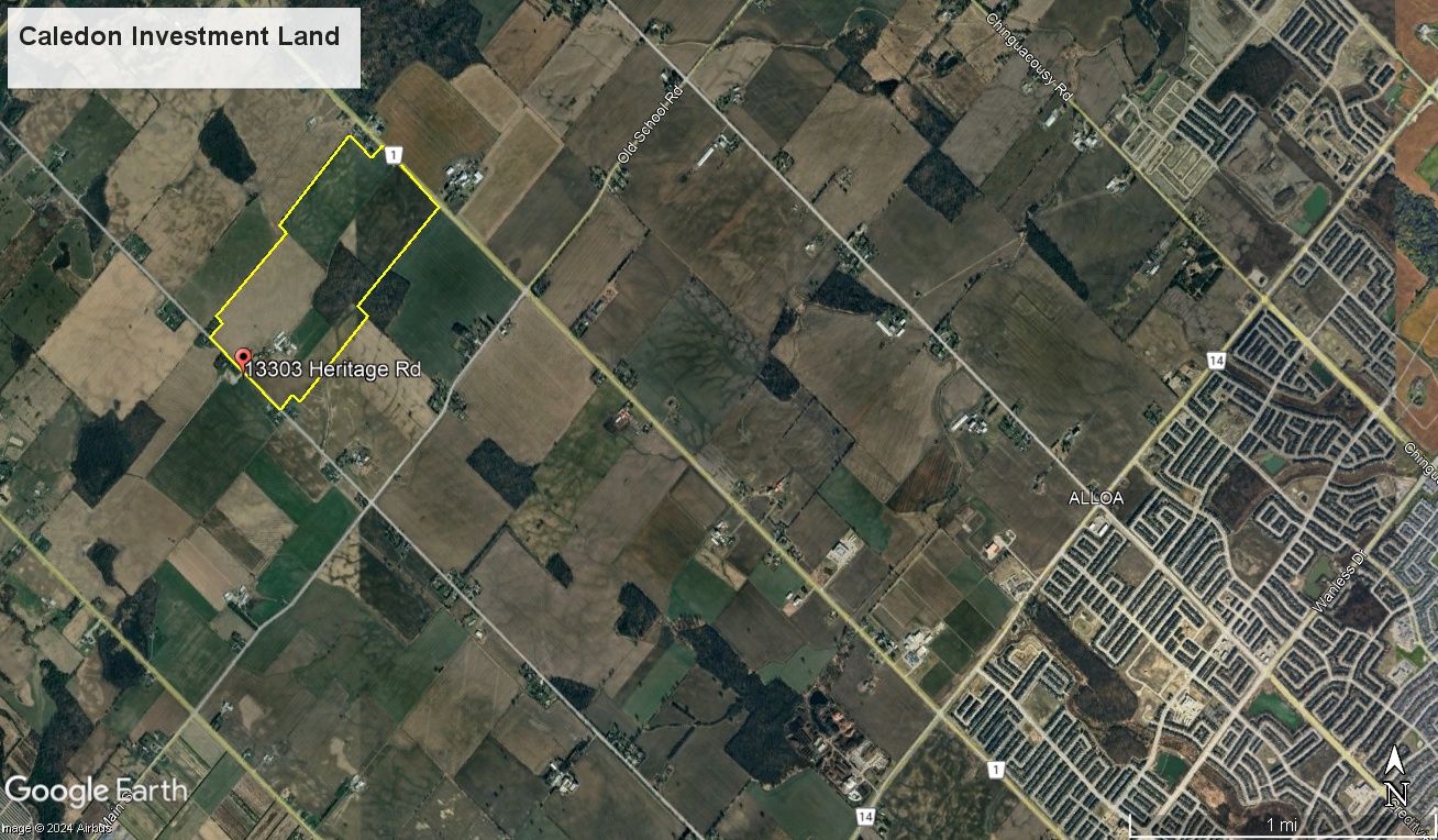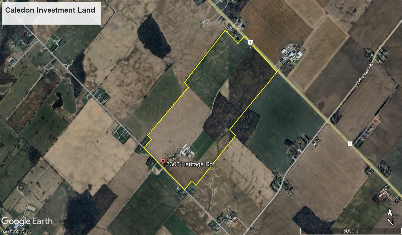 Over 192 acres of flat land minutes north of City of Brampton/Alloa. The property stretches from Heritage Road eastwards all the way over to Mississauga Road.