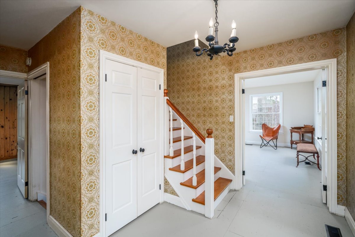 The 4-bedroom Cape Cod style home is well placed at the end of a long driveway on a rise overlooking the grounds.