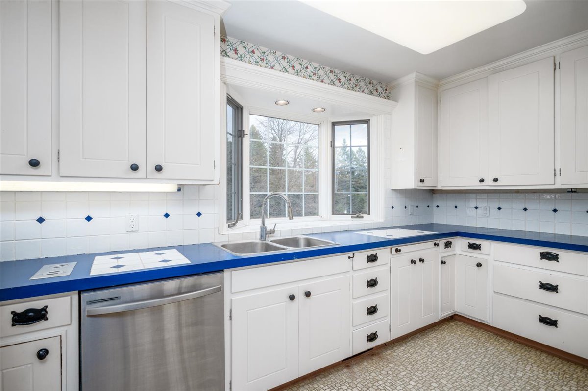 The main floor features a large kitchen overlooking the front garden, combined with a dining area that overlooks the light-filled sunroom with a walk-out to the expansive cedar deck.
