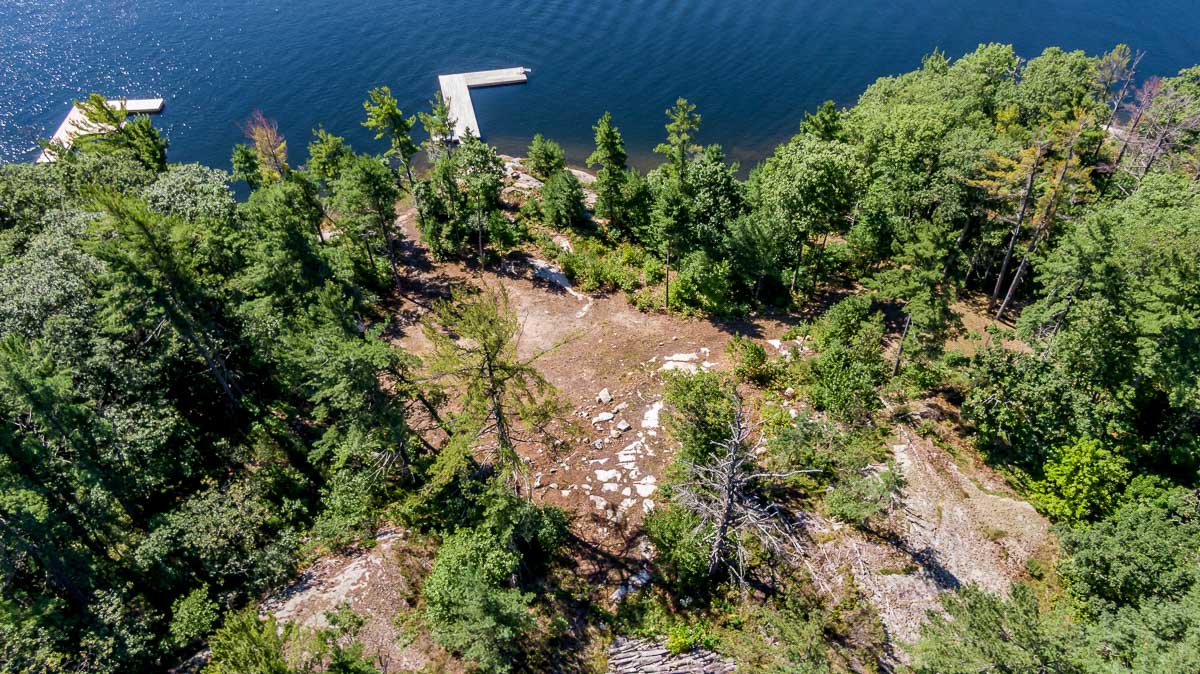 A 2.6-acre premium lot with 469 ft. of west-facing shoreline, mixes smooth granite and a natural beach. The building lot features an oversized building envelope that slopes upwards for a stunning view.