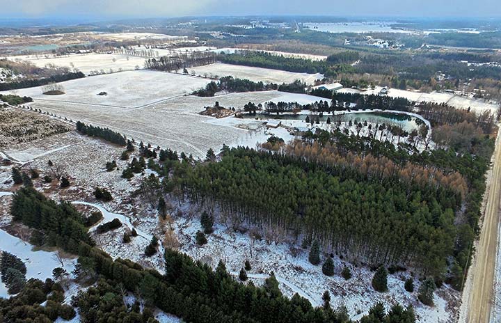 Privacy from the quiet country road is offered by mature evergreens planted years ago. The woodlands then open into well maintained rolling hay fields. Picturesque views in all directions. Large fenced horse paddock.