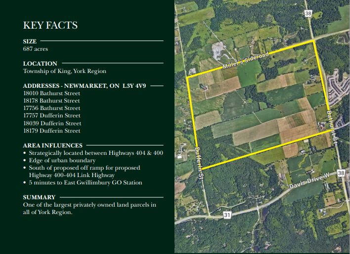 The property runs from Bathurst Street all the way to Dufferin Street, south of Miller’s Sideroad.
