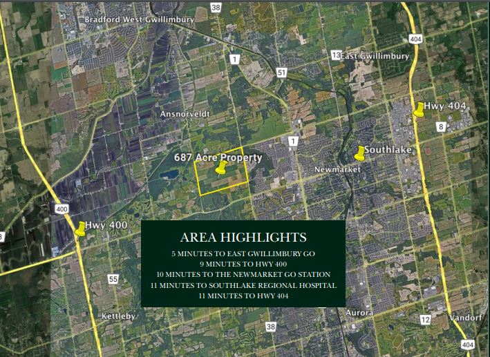 One of the largest parcels of privately owned land in all of York Region! 687 acres located on the border of Newmarket.