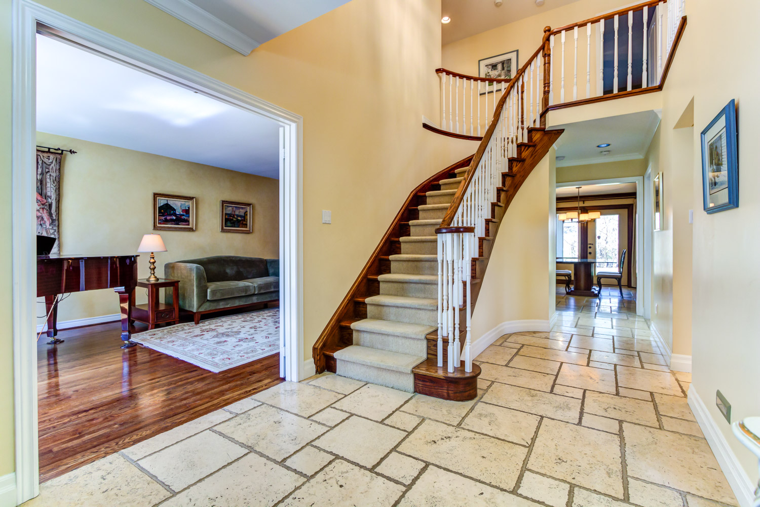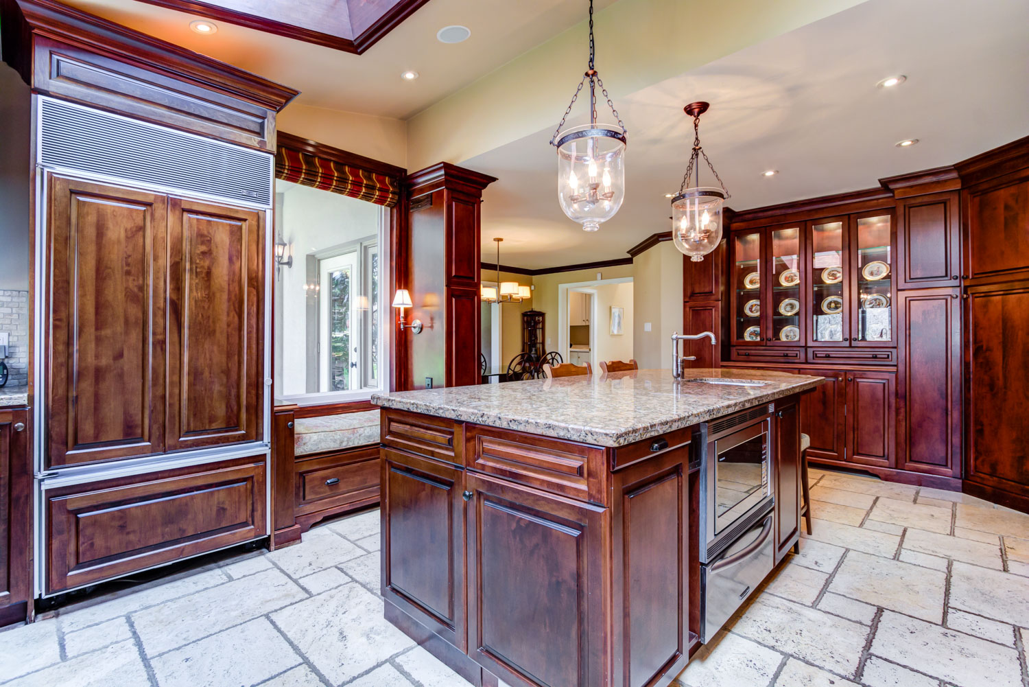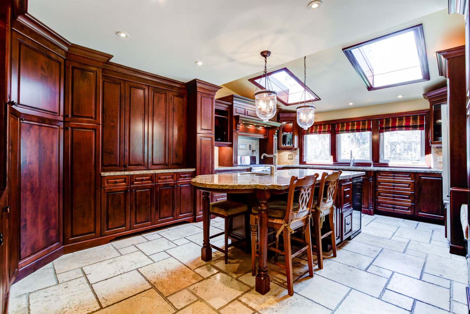 Elegant travertine stone flooring throughout most of the main floor. Fireplaces in the Den and Family Room. Finished basement ideal for Nanny or In-law suite.