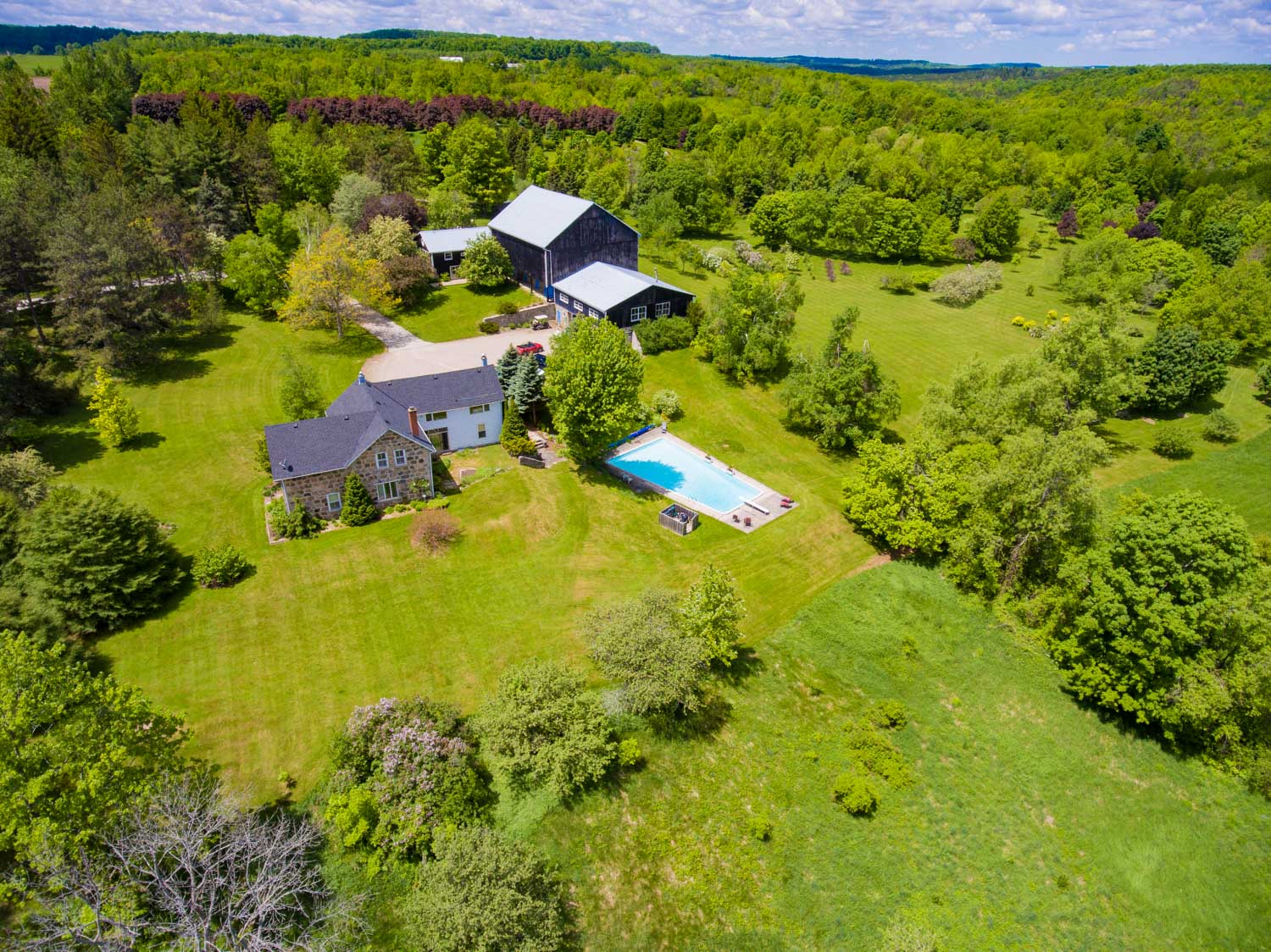 Sections of the farm are under cultivation by a local farmer which is rotationally cropped. The property is very accessible and benefits from a vast network of golf cart/atv trails throughout the woodland valleys. The property has entrances off the quiet 25th Sideroad of Mono and the 4th Line EHS Mono.