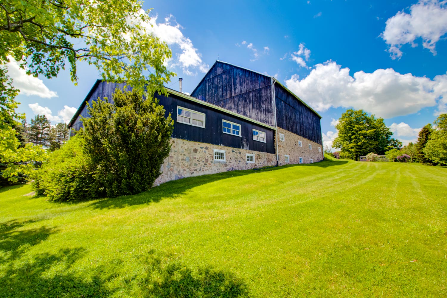 The century barn is of architectural interest as it has 3 storeys which is very unique for a bank barn. The ground level has a heated office/workshop and bathroom. The second floor has a large recreation area and the top level was the original loft. The main section of the barn would have been home to teams of heavy horses used to work the lands.