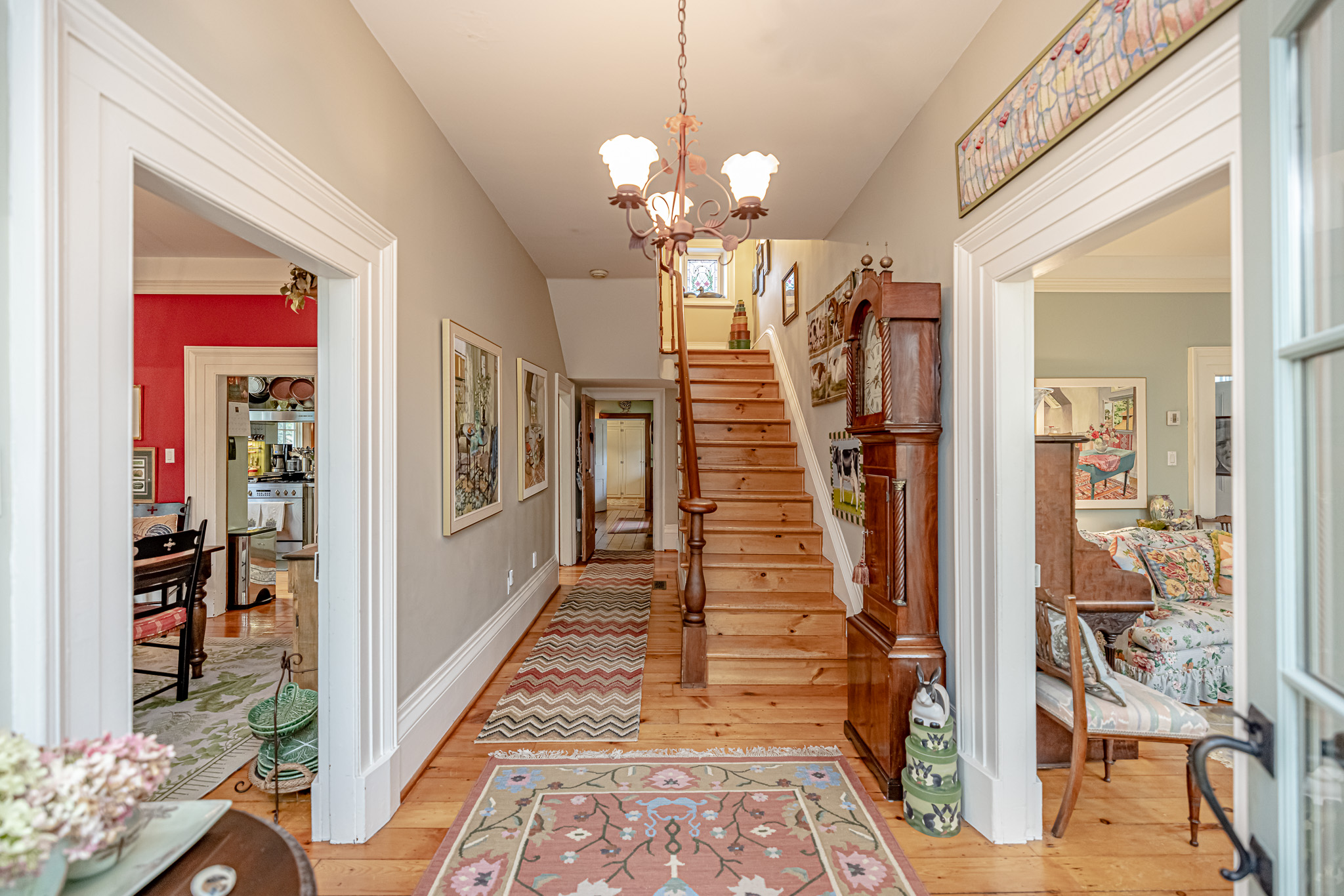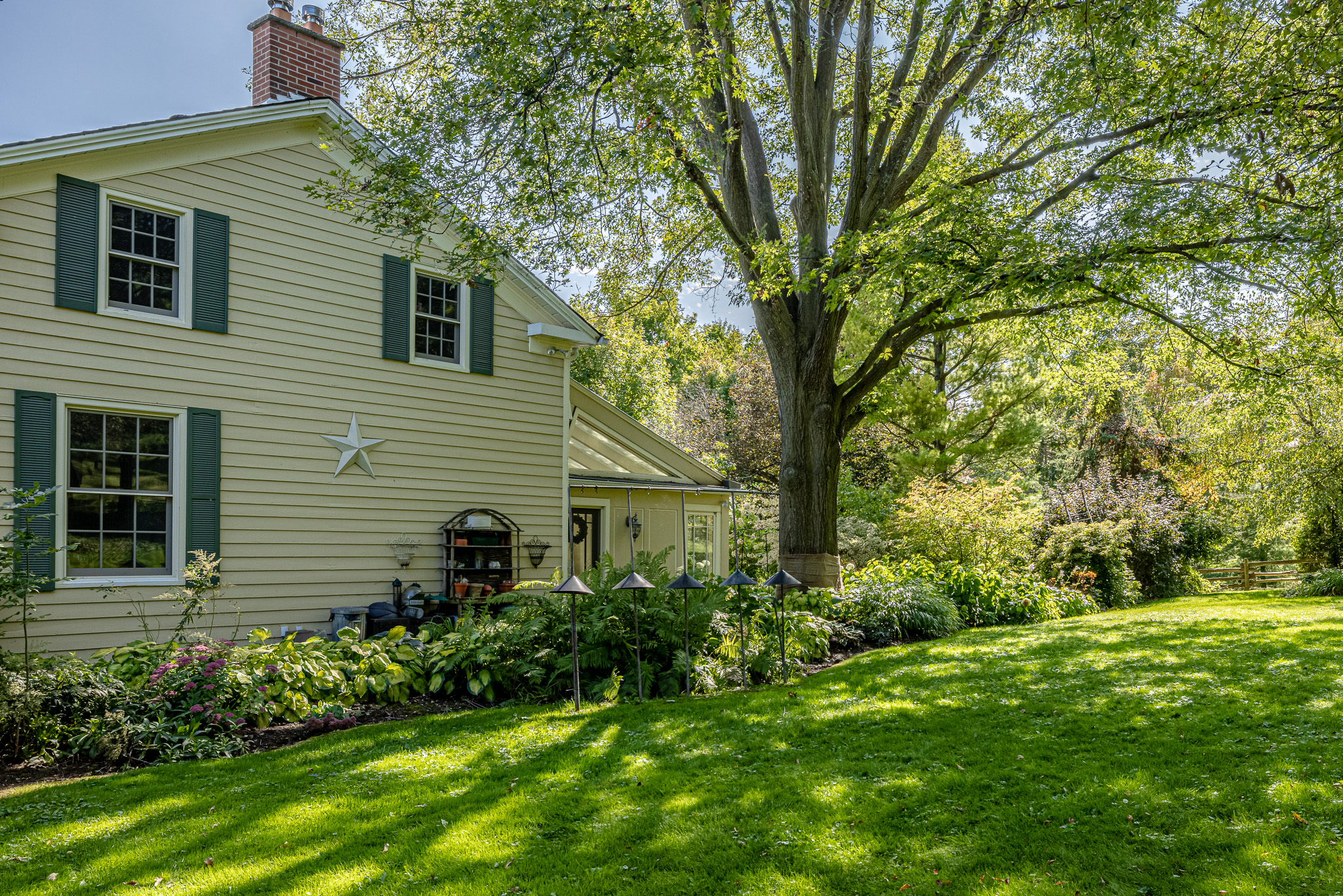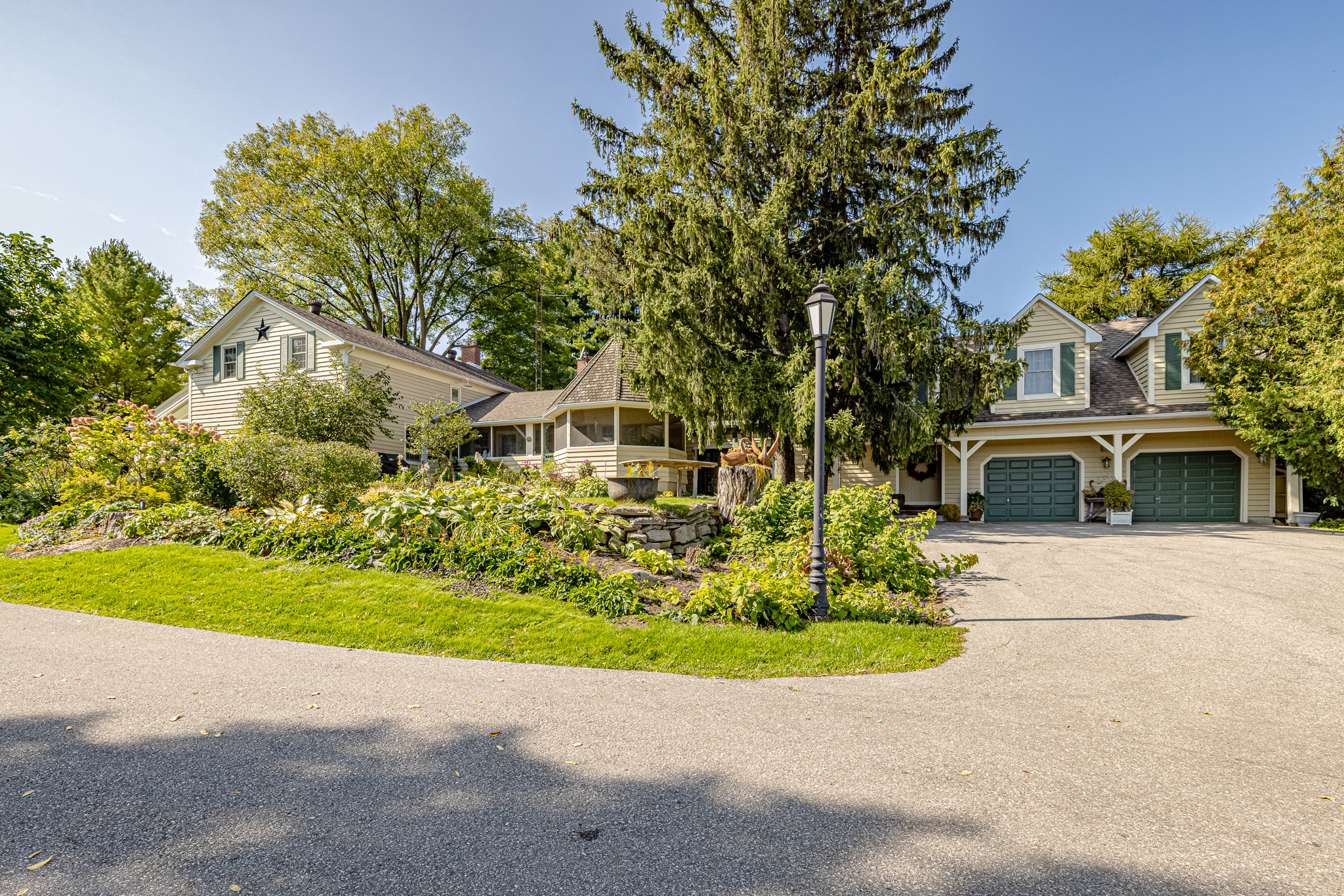 The main residence is a fully refurbished five-bedroom, country home. The house is surrounded by professionally designed, English country, perennial gardens, a stone walled organic vegetable garden plus miles of walking trails through farm fields and meadows.