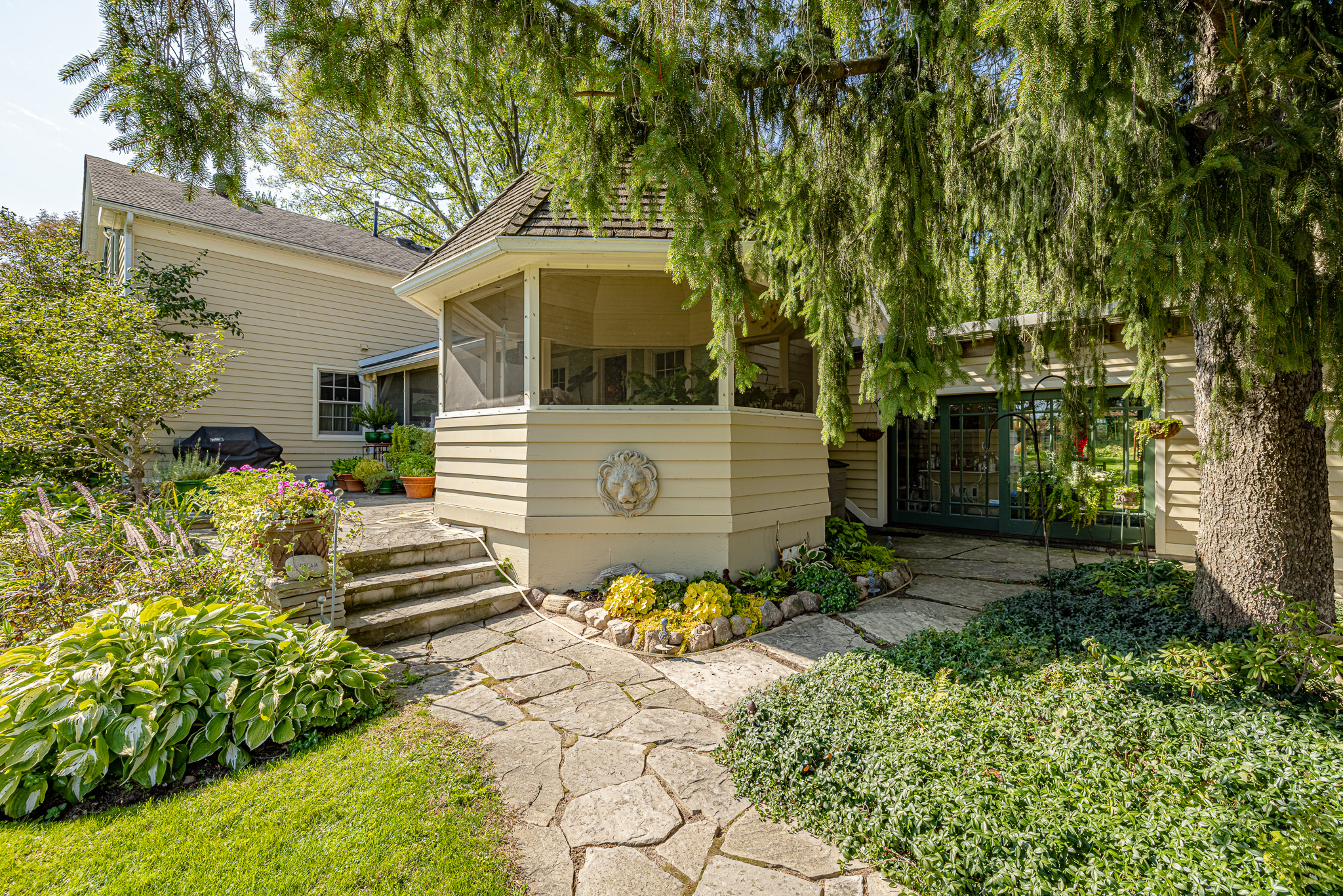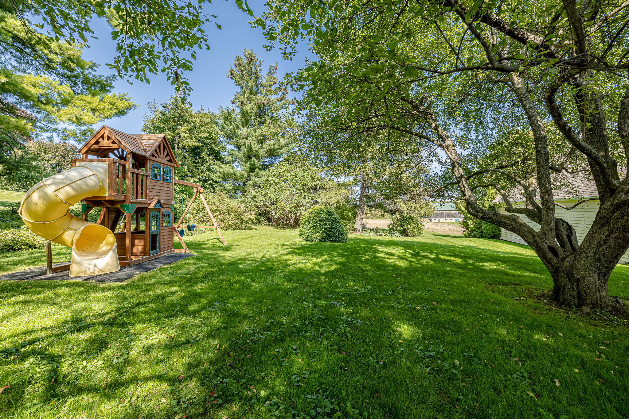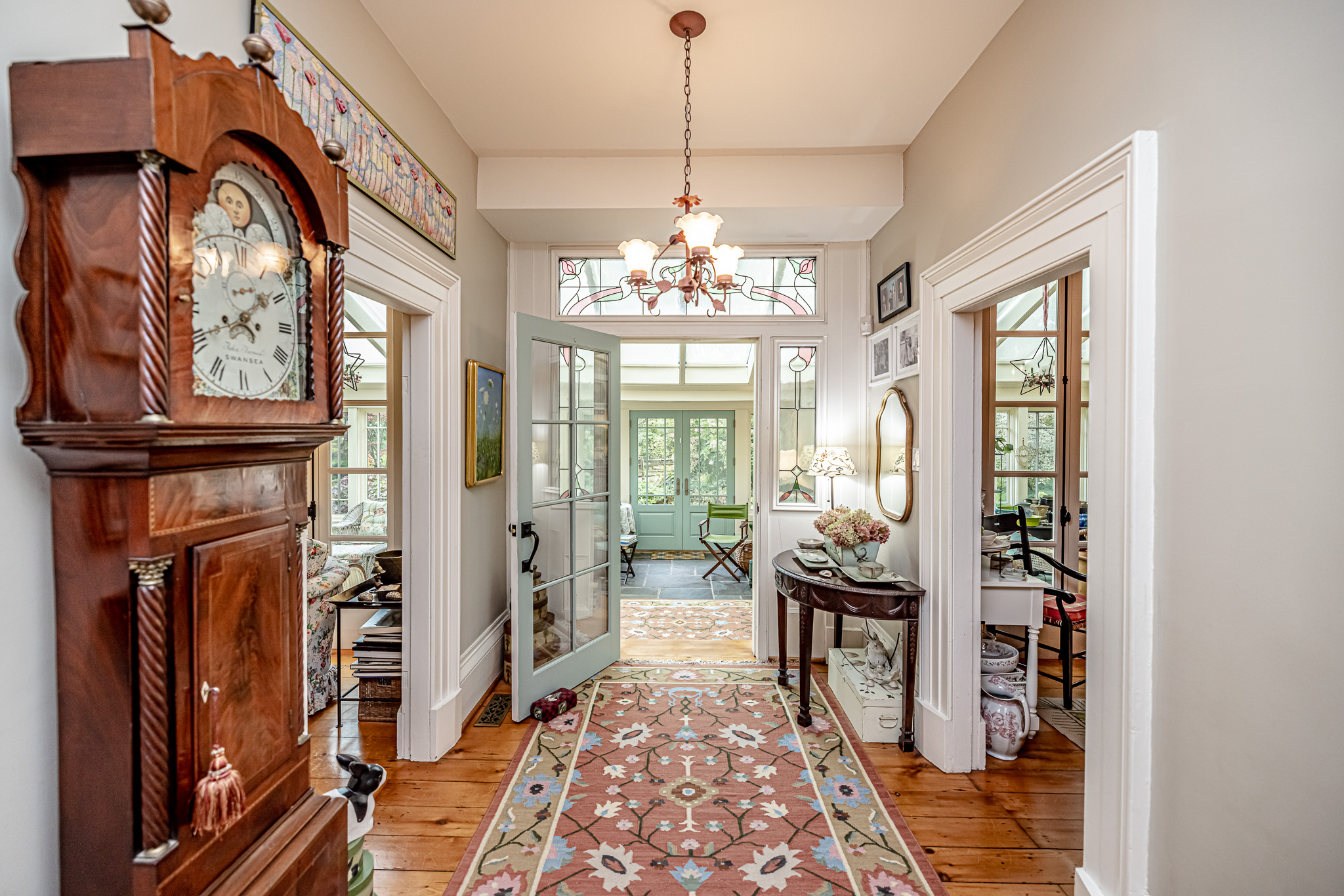 The main residence is a fully refurbished five-bedroom, country home. The house is surrounded by professionally designed, English country, perennial gardens, a stone walled organic vegetable garden plus miles of walking trails through farm fields and meadows.