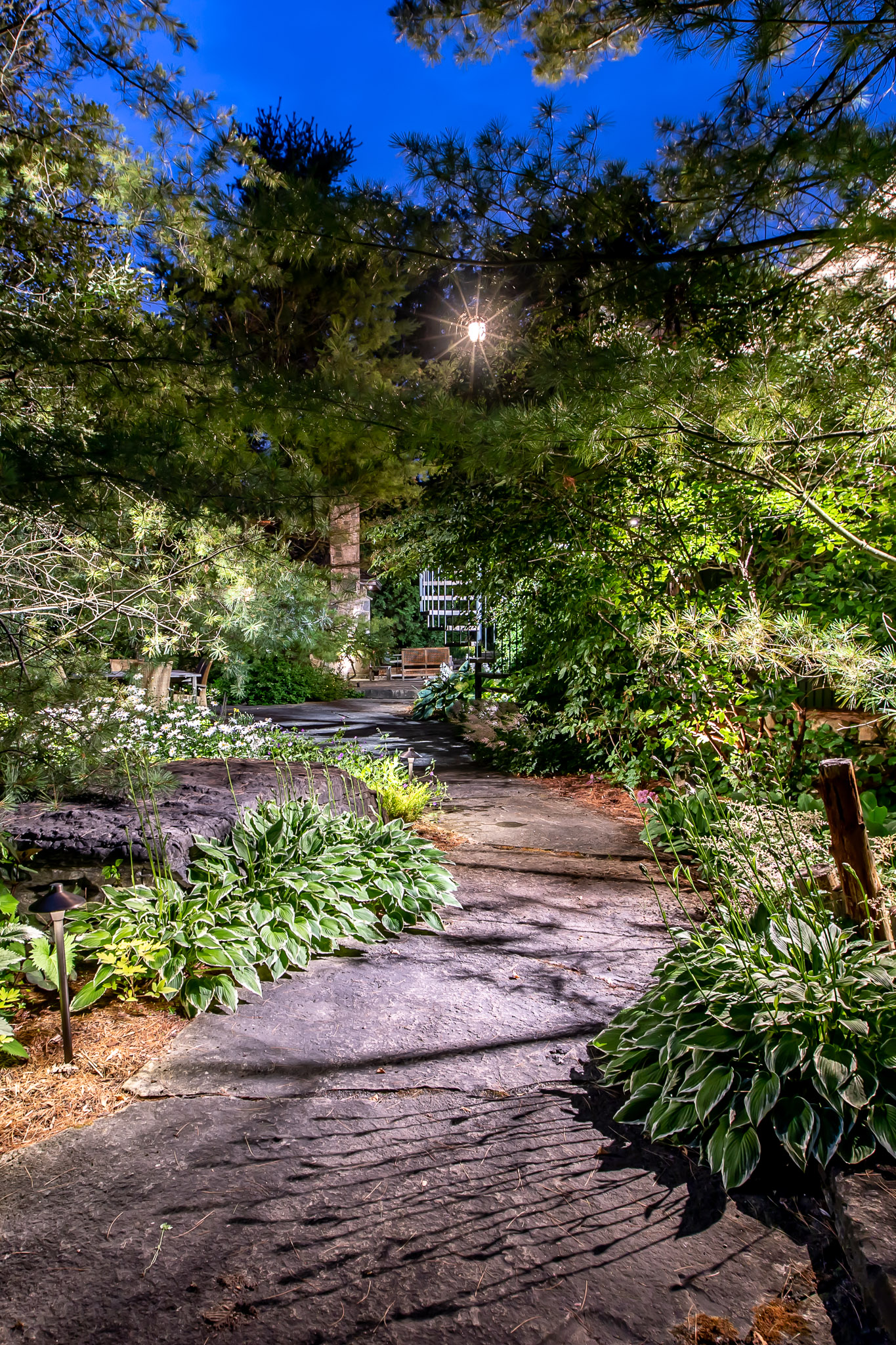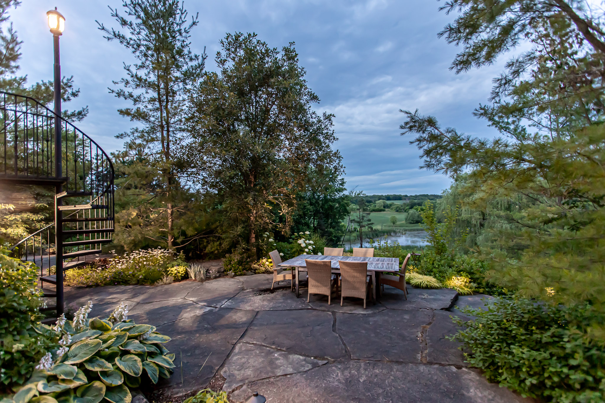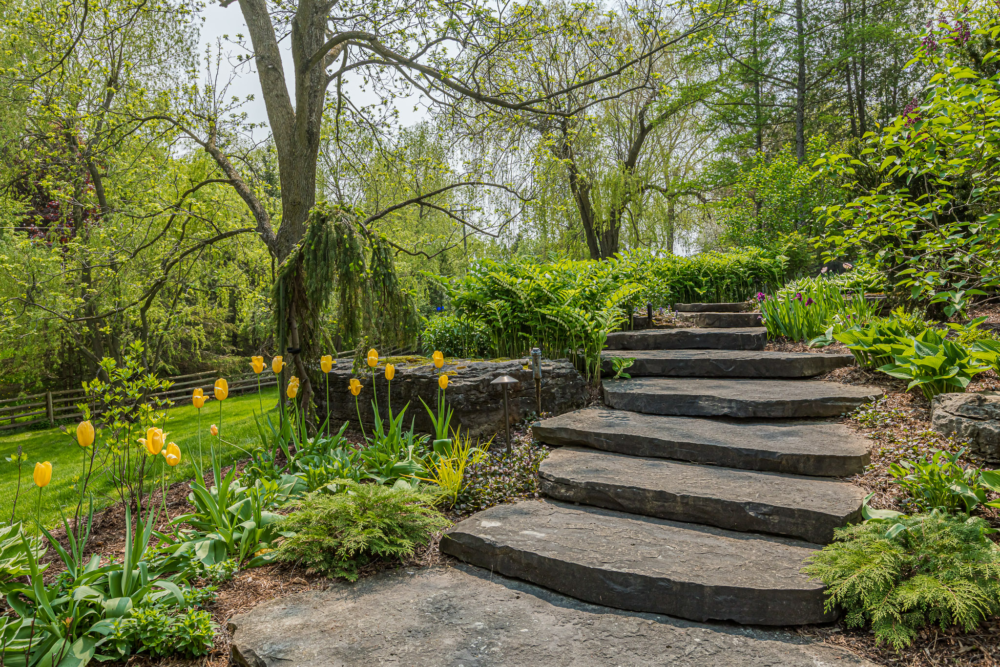 The lower level walk-out leads to the stunning backyard.  This light space has a large entertainment room and additional bedroom with en suite bath plus space for a workshop.