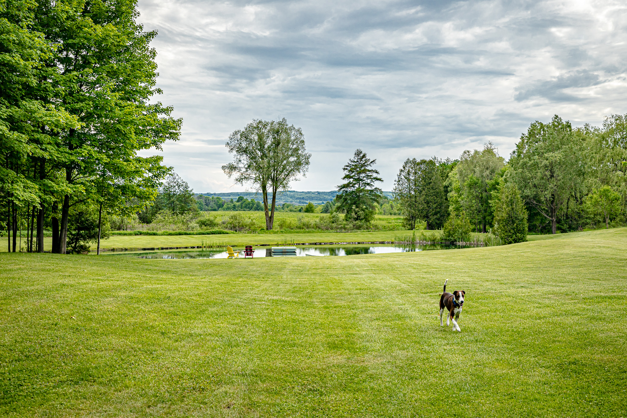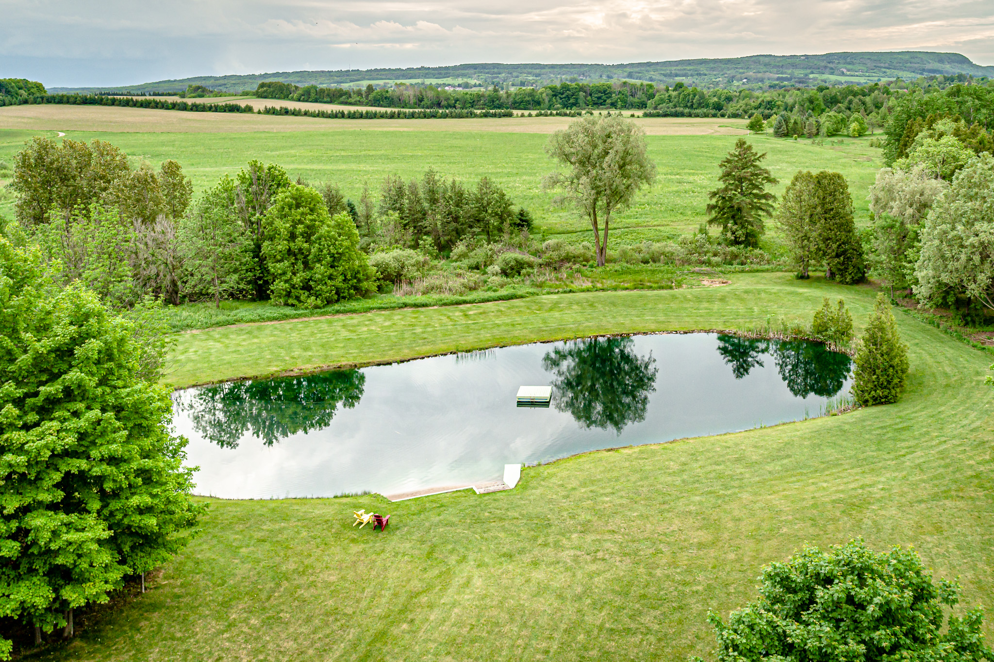 - Spring-fed swimming pond with beach and swimming raft