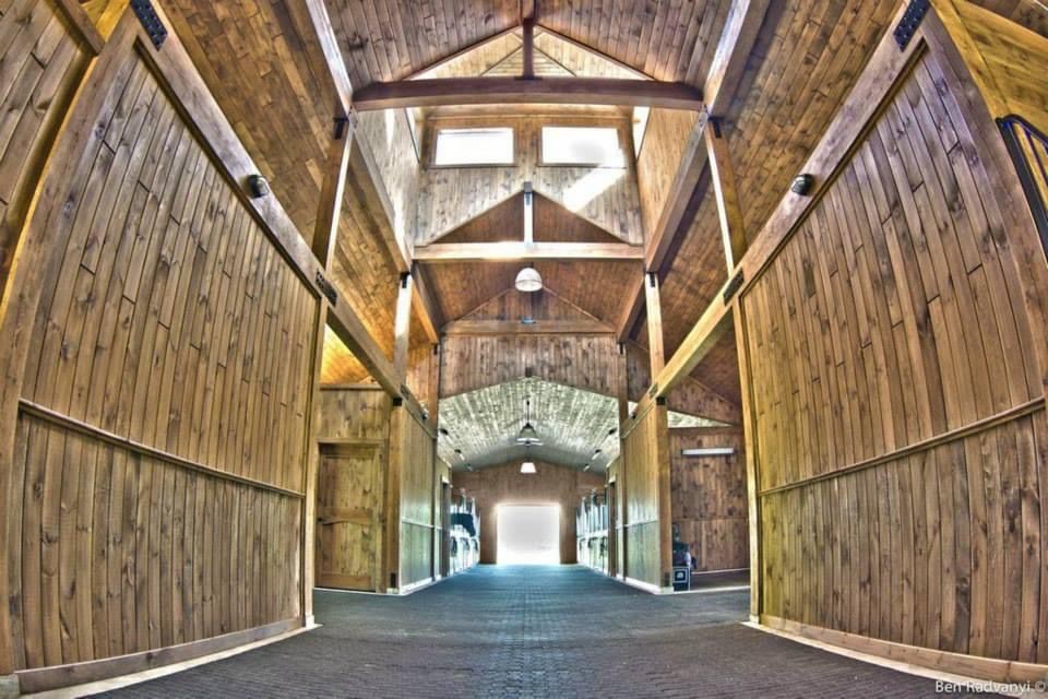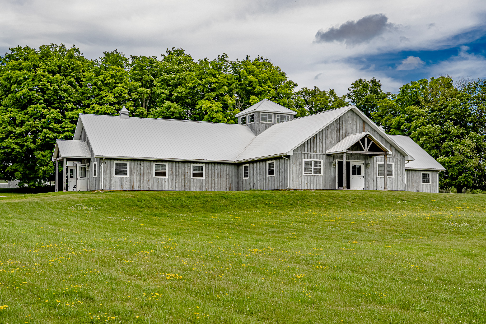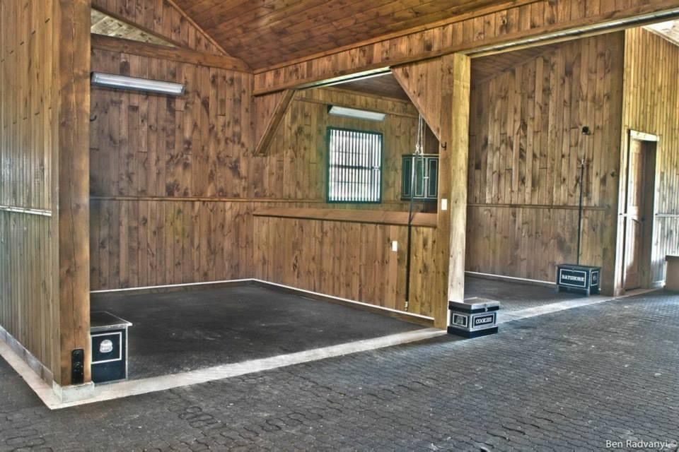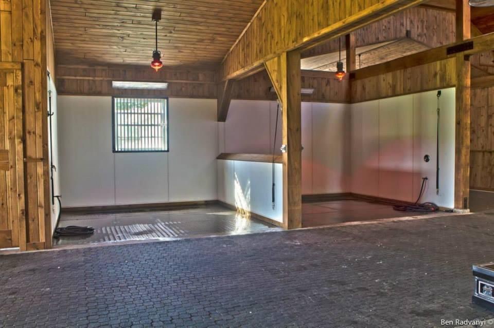 A recently built 12-stall barn with central foyer. This state-of-the-art facility has 2 grooming stalls, 2 wash stalls, washroom, large tack room, office, laundry, feed room and multiple storage rooms. An elegant stable reminiscent of the classic New England barns.