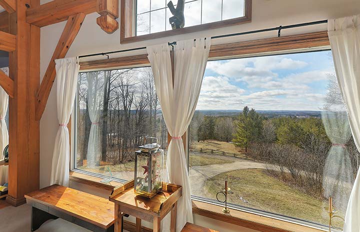 Perched on a hill is this idyllic, custom built, Post and Beam residence. This four bedroom, family home enjoys views of the neighbouring country side from every window. It is nestled within a very private seven acres surrounded by hardwood trees and abundant wildlife.