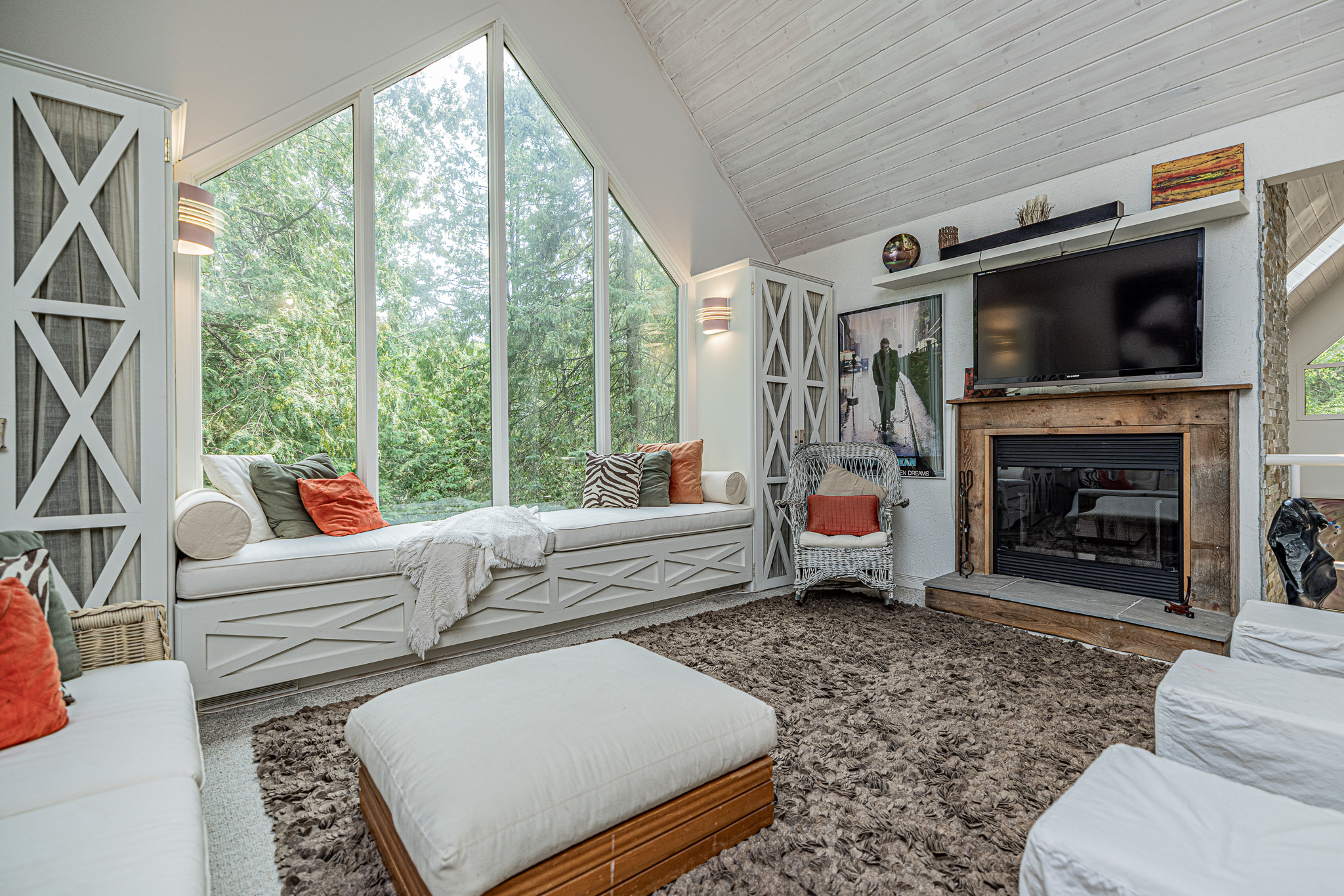 3 bed + den riverfront cottage with no public access street – very private. An entertainers oasis, wood burning fireplaces, entire upper floor is the primary suite. A true treetop creative oasis. Priceless river frontage.