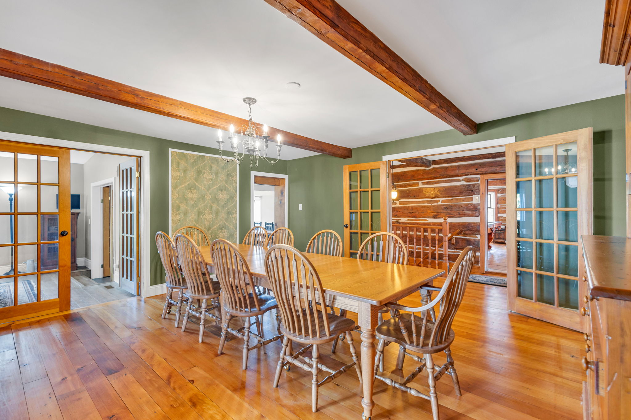 This 4 +2 bedroom character filled residence that originally started off as a log home with later expansive additions. Open concept kitchen with large eat-in area; wide pine flooring; large stone wood-burning fireplace. Primary bedroom has expansive sunrise views over the fields.