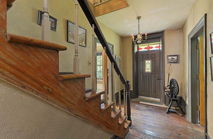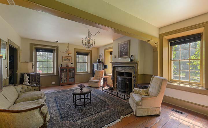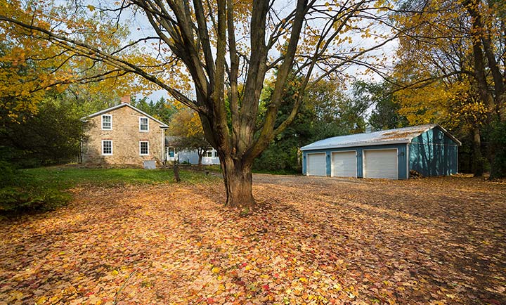The 4 bedroom stone house, which is about 155 years old, surrounded by mature trees. The home has large principle rooms with 3 wood stoves and a stunning exposed stone wall in the kitchen.  The original wood floors and trim are all intact, plus great deep window sills that stone houses are known for! The eat-in country Kitchen has glass doors leading out to the patio with great views of the perennial gardens and the Caledon countryside in the distance.  Upstairs, there are 4 bedrooms, along with a 3 piece bath. The laundry is conveniently located on the main floor.
