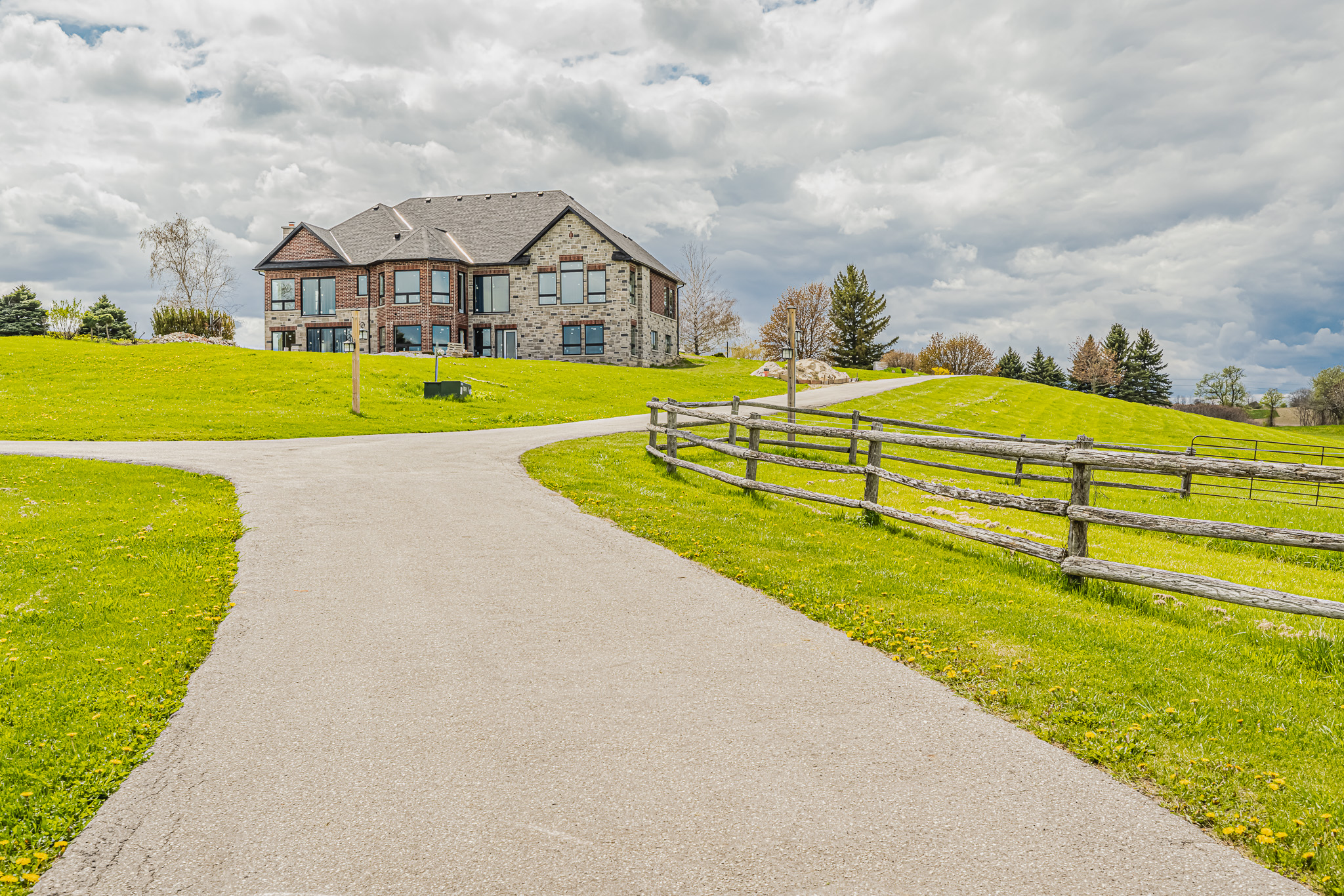 Here is your chance to complete a custom home on 25 acres in King with the finest views in the Township. The 5-bedroom plus 1 bedroom loft apartment is crafted from stone and brick home and is placed down a long gated paved drive. This custom home is ready to be finished by a new owner. Once complete, the home will have 5 bedrooms all with en suite bathrooms plus a self-contained full-service 1-bedroom loft apartment over the 3-car garage. The home overlooks the swimming pool and to the east of the home is a stable and a fully winterized and updated 3-bedroom modular home.