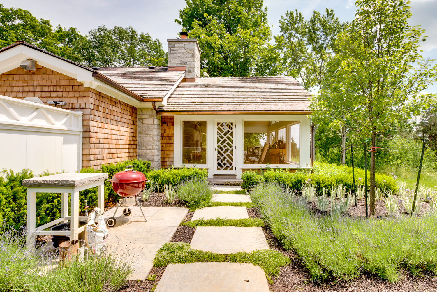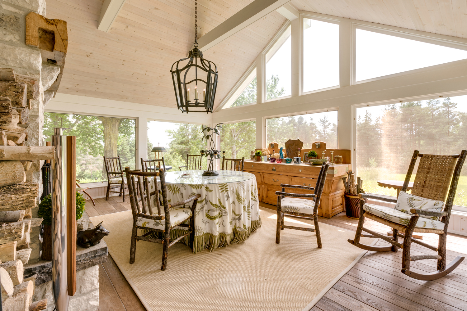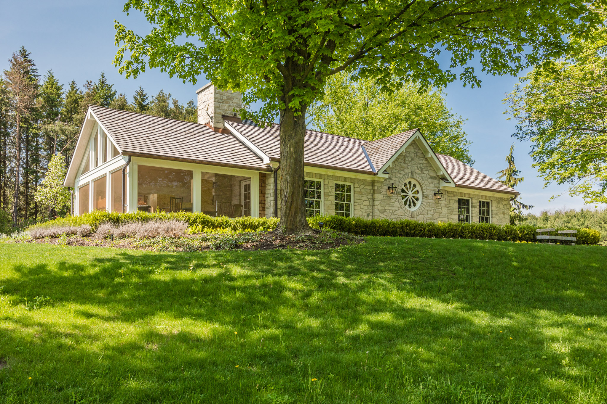 The stone guest house has just finished a total renovation and now offers 3 bedrooms/2 full baths plus a wonderful panelled living room and large west facing screened porch with stone fireplace. The gardens and stone terrace around this home have been fully re-imagined. This house is well placed down a long private driveway which leads west from St Andrew’s Road (paved). Obtaining planning permission for 2 houses on 50 acres in this location would no longer be allowed. Take advantage of this unique situation!