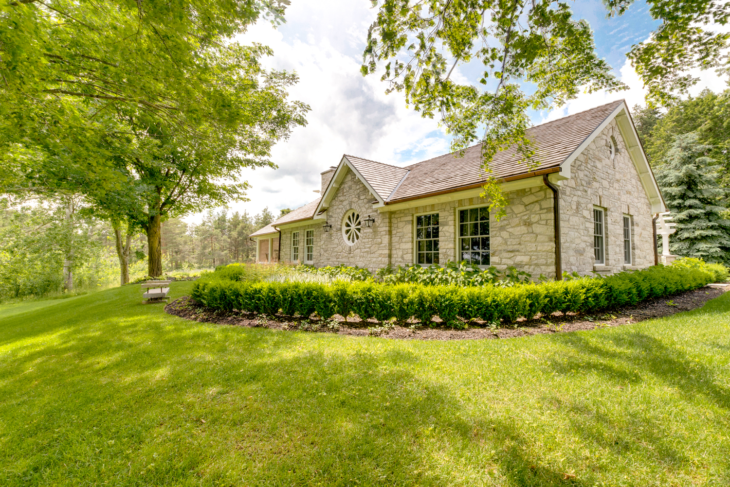 Located on one of Caledon’s finest roads is this west facing 50 acre property with a charming renovated stone home, stream, Century barns & the grandfathered right to build another home. Located within walking distance of the farmed Devil’s Paintbrush golf course, this country property has  rolling hills, woods, pool, tennis court and crystal-clear stream. A magical setting!