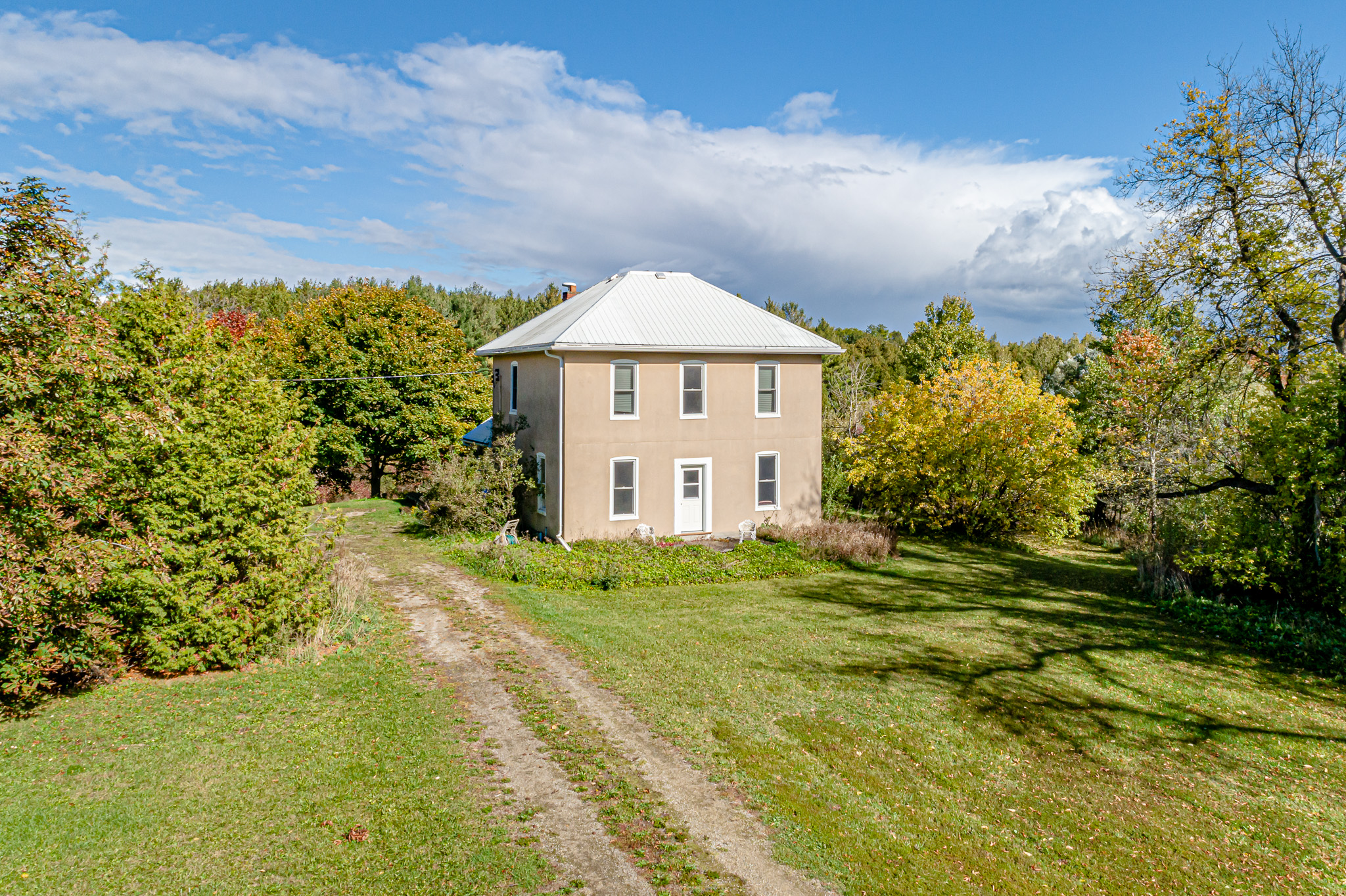 The current home could be used as a base while a new home is being built. The century home has updated windows and stucco exterior and is in good repair. The home is well set back from the quiet country road and is placed on a rise with a walking trail leading to the spring-fed pond to the east of the home. There is a solid driveshed and bank barn to the north of the home.