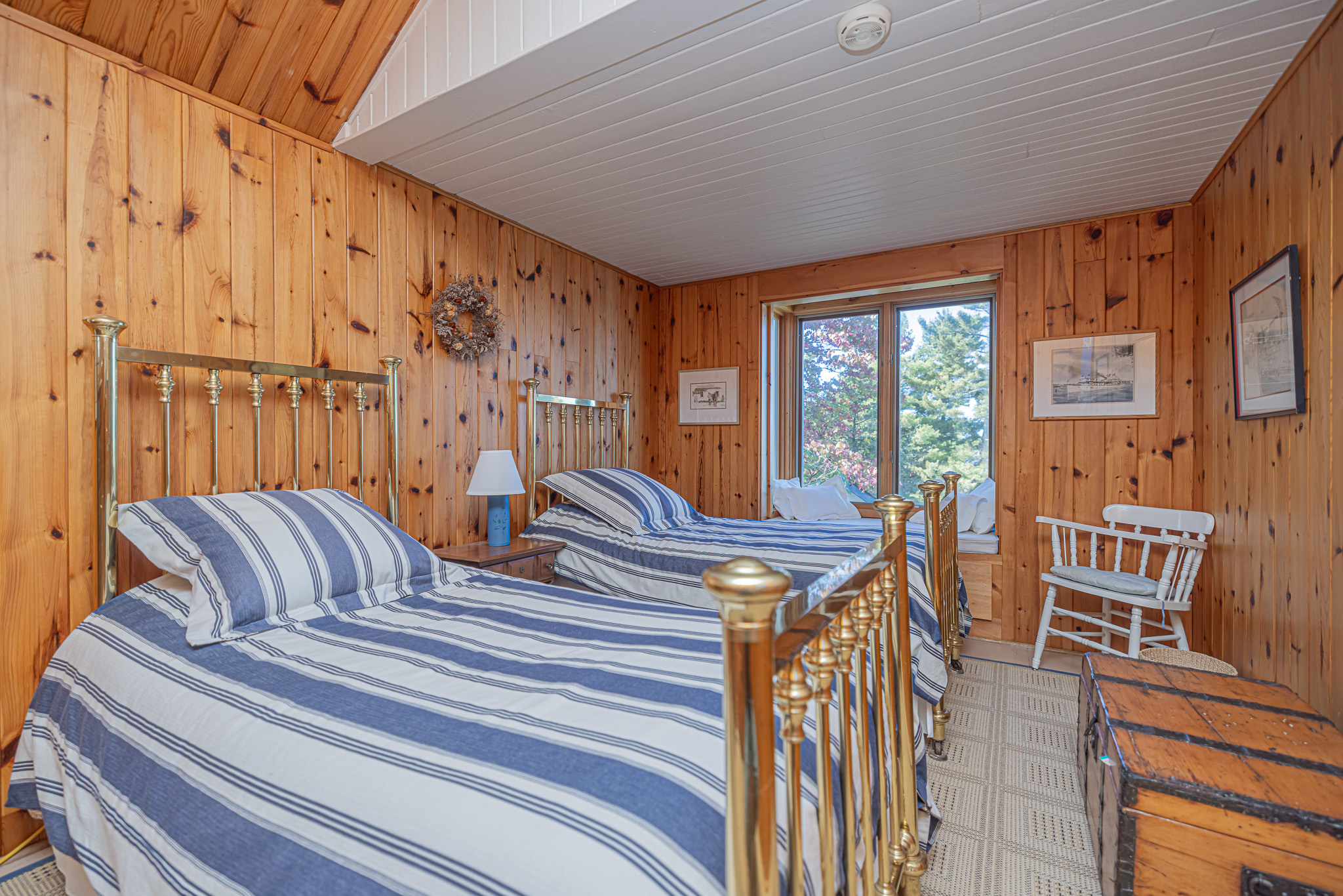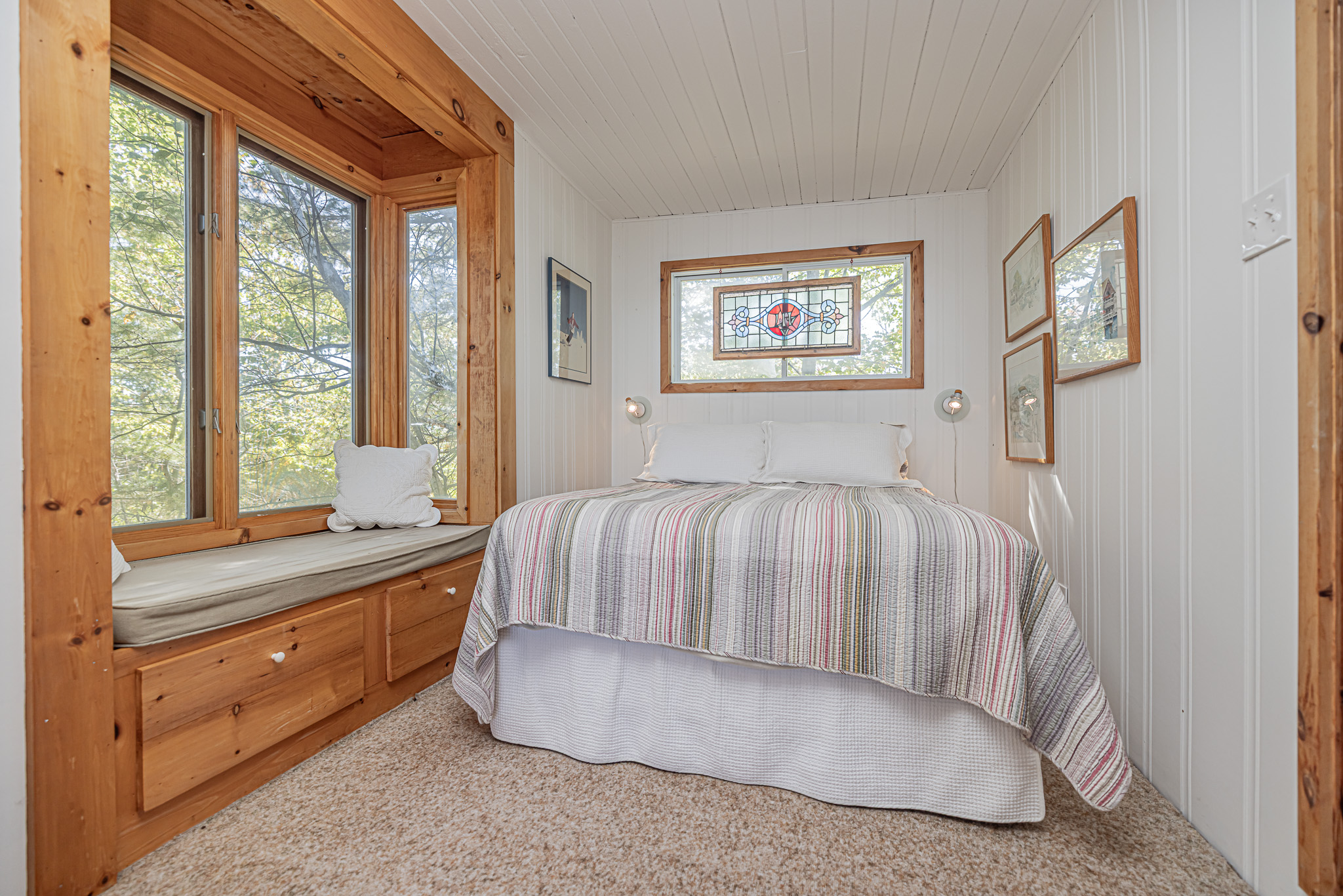 The original 1940s cottage sits on a rise above the east shoreline, blending charm, function, and opportunity.