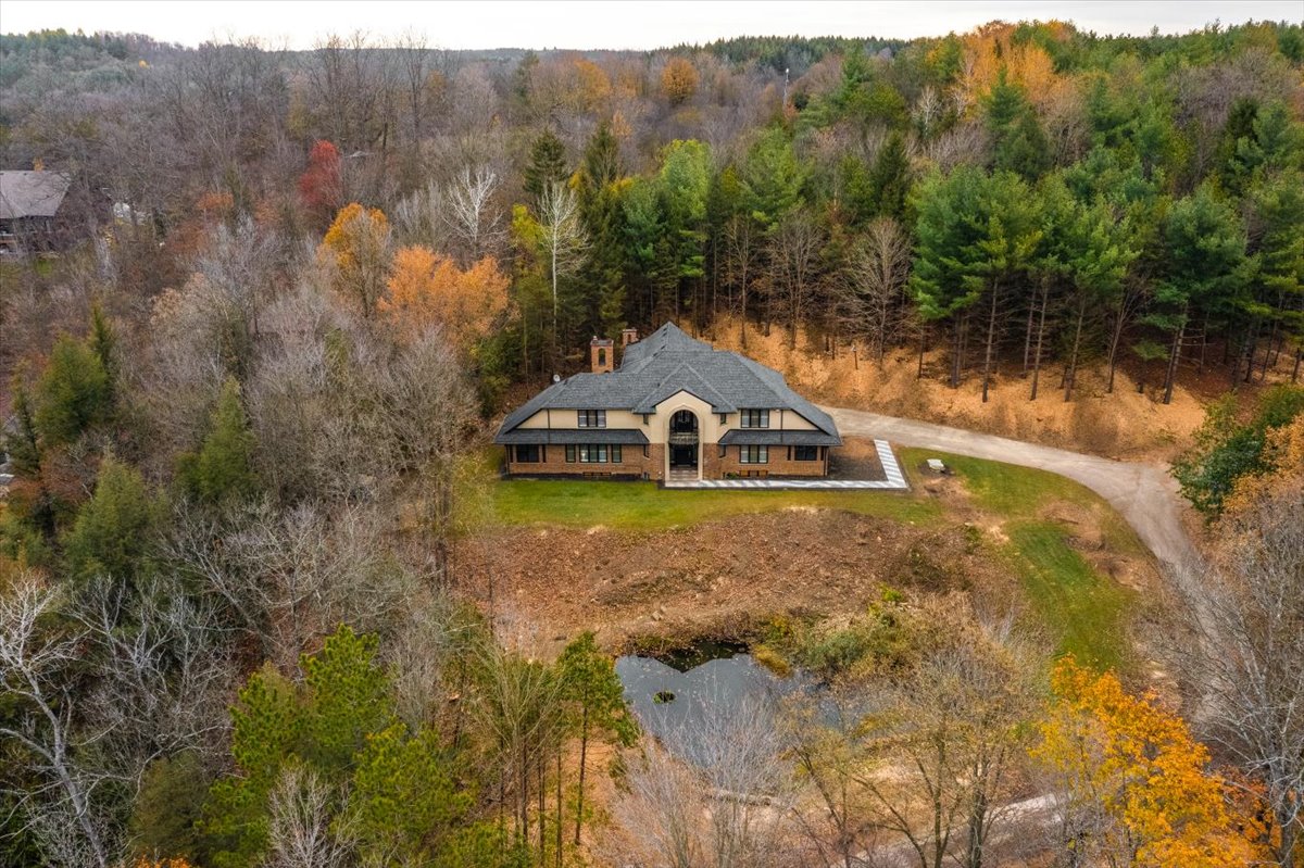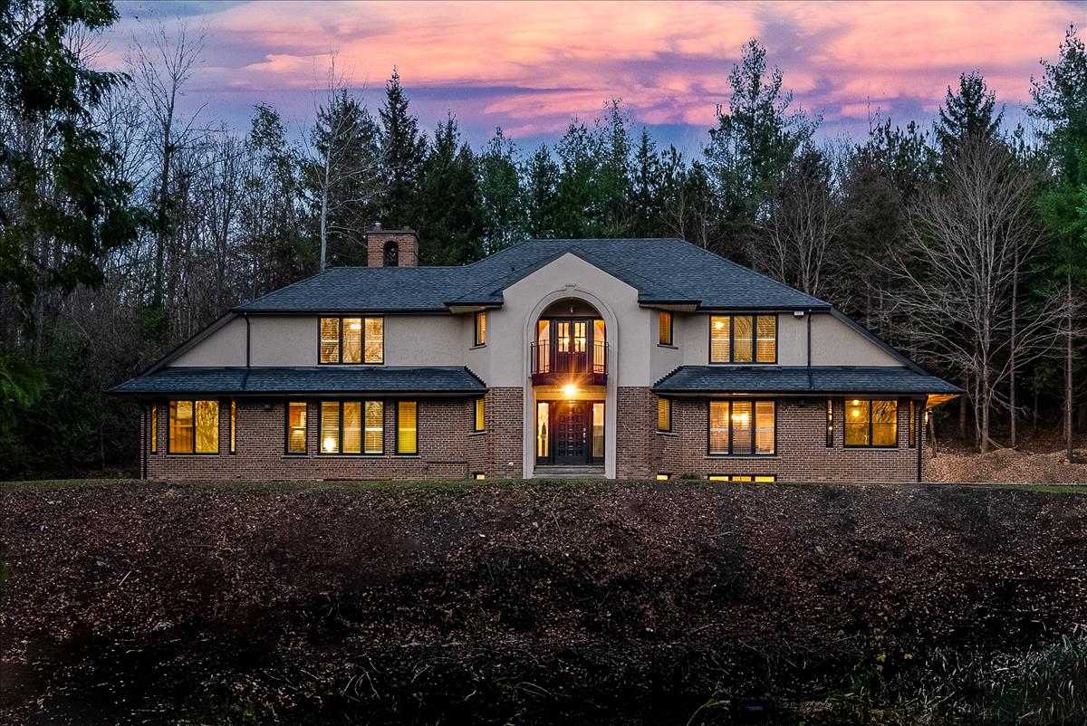 Beautiful, private 12 acre property in King. 5 minutes to Bolton. 5,500 sq ft 4-bedroom home, overlooking the pond and 1-bedroom apartment above the 3-car garage with a separate entrance.