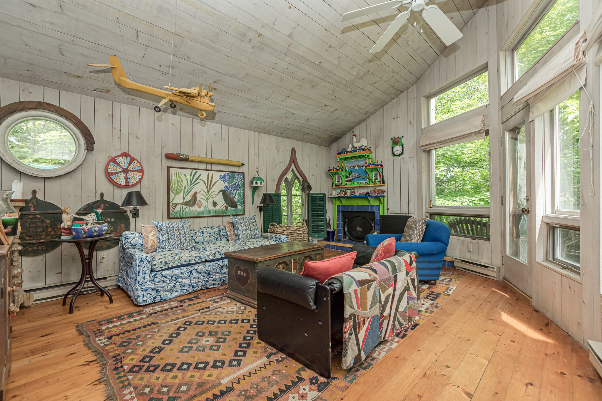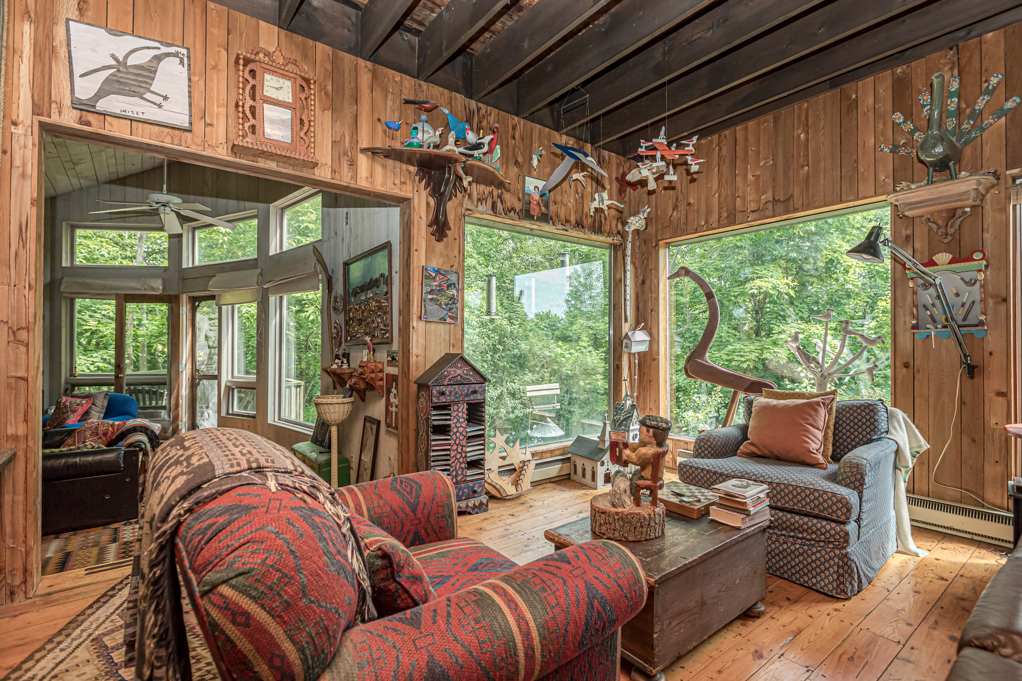 The long winding driveway leads to the wood home nestled on 48 acres surrounded by a variety of natural features including open meadows, woodlands, a dramatic ridge and a pond. Whimsical bird feeders and a wonderful country garden attract numerous beautiful birds to enjoy.