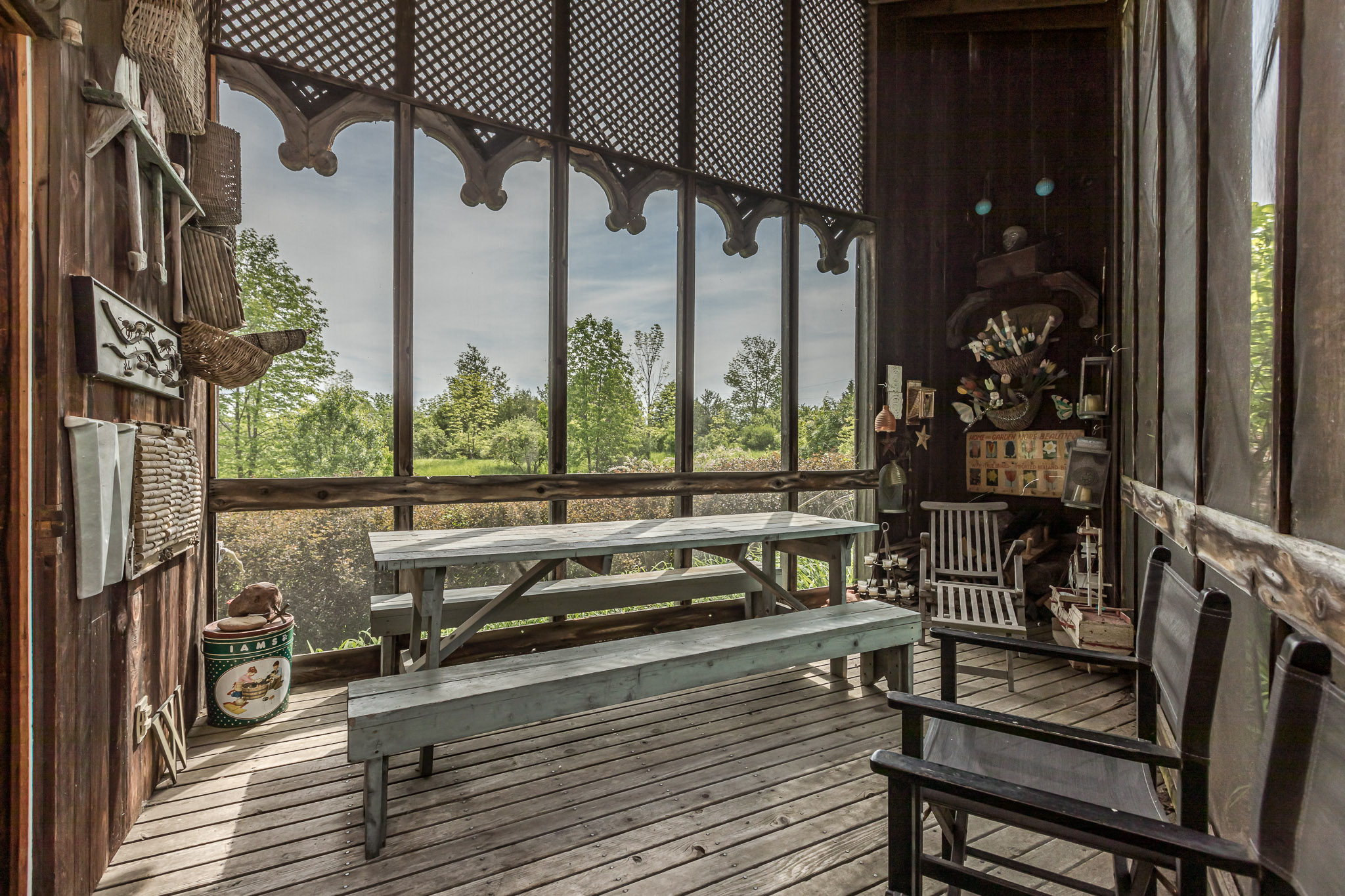 The owners collaborated with Markson to create a one of a kind retreat. Windows salvaged from a 1920’s cinema on Parliament Street and some from a demolished church on the St Lawrence River were used to create a stunning focal point to enjoy the view of the natural beauty outside the home.