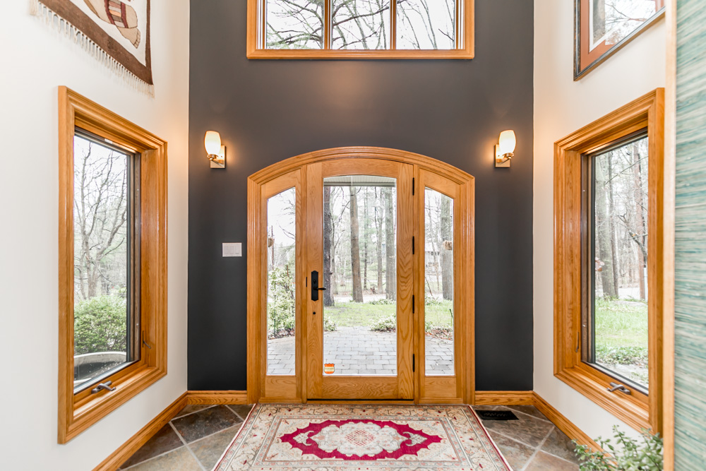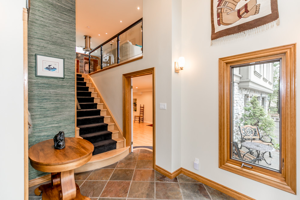 • Welcome guests at the front entrance with 16 ft. high ceiling, slate floor and natural light from surrounding windows.