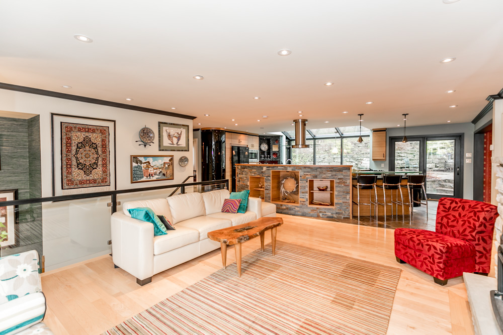• Walk into the Rec Room or ascend the stairs to the custom kitchen