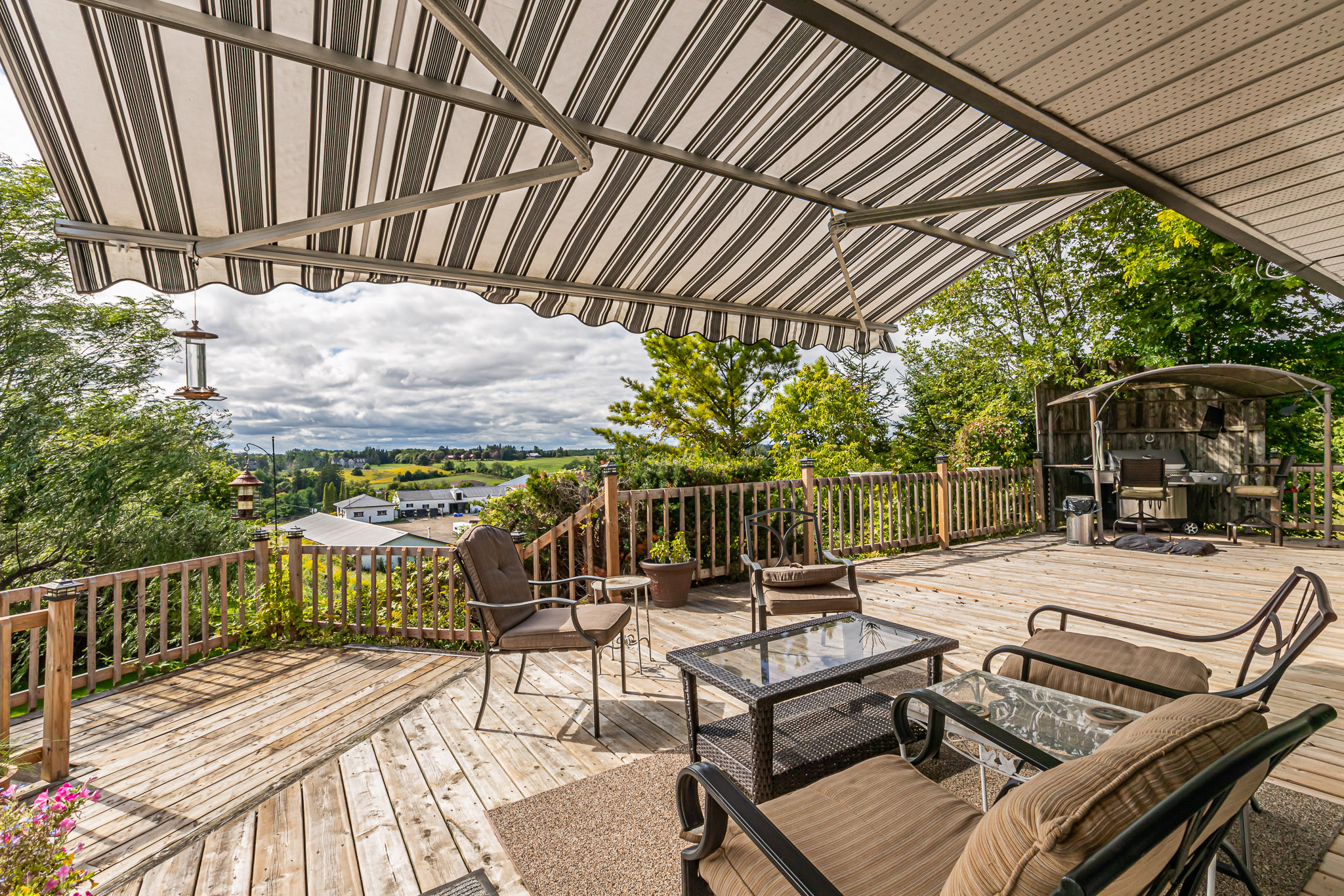 The large west facing deck off the family room has an electronic awning and can accommodate a large seating area plus bbq station.
