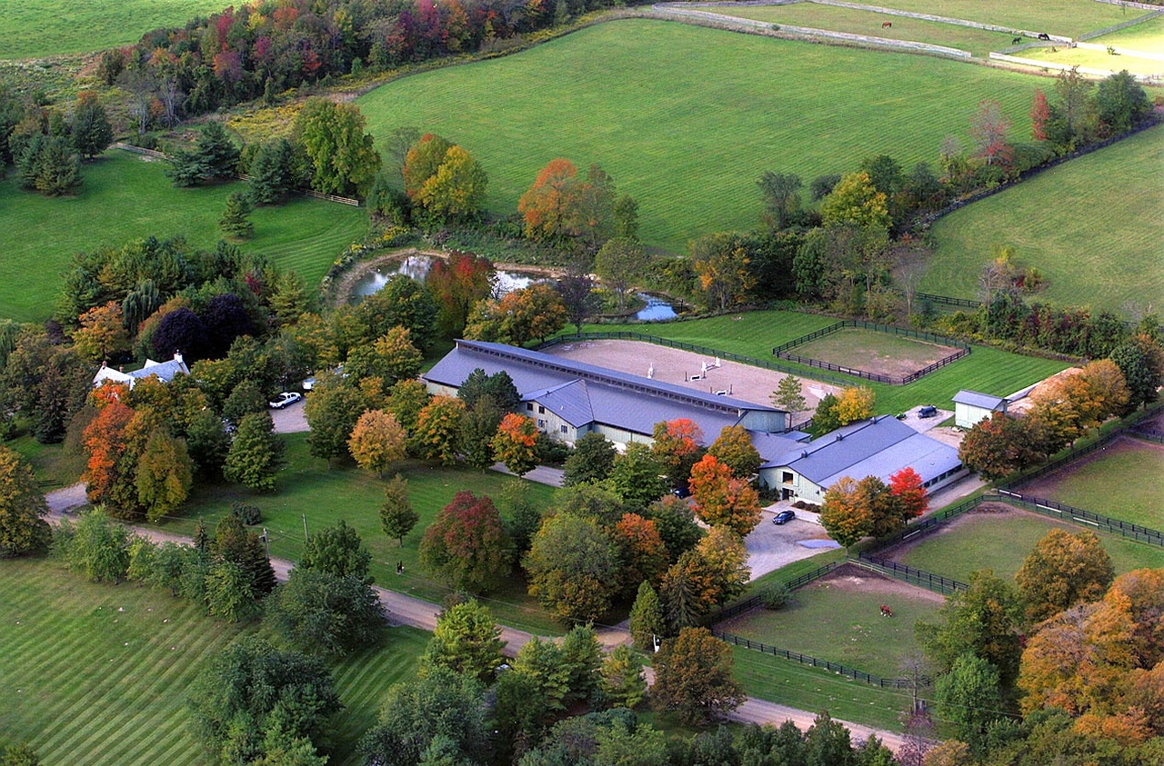 Perhaps the finest horse neighbourhood in Caledon with neighbours including Iron Horse Farm, Hart House Farm, Southdown Farm, and The Caledon Riding Club. The property spans almost 100 acres including rolling board paddocks, mature hacking woodlands and several large hay fields. The facility is exceptionally well located being 25 minutes north of Lester B. Pearson Airport, Palgrave or Angelstone, and just minutes north of Highway 410.
