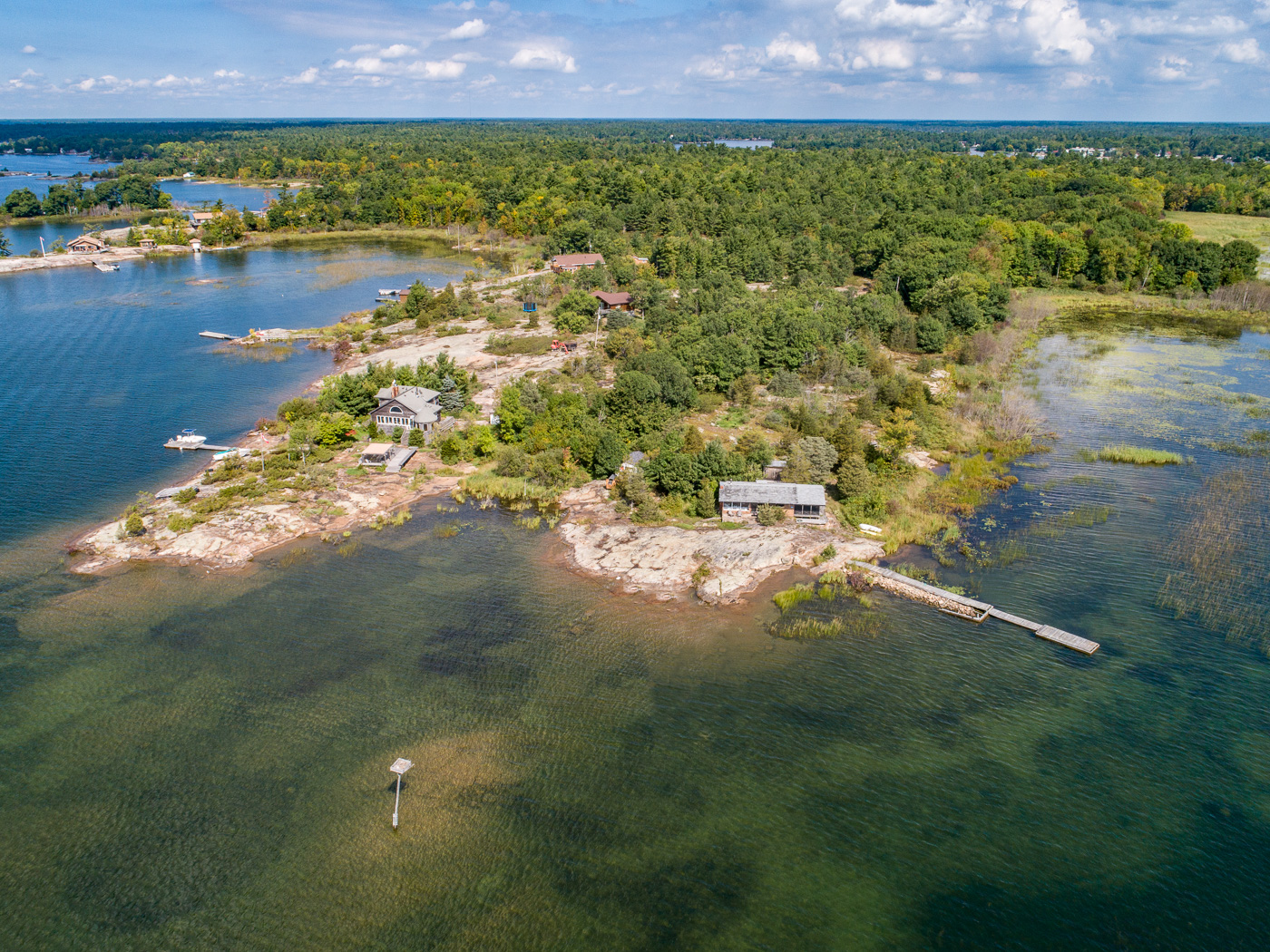 Take advantage of this opportunity to own a south-western point on Robert’s Island with 2 main cottages, 3 accessory buildings and 2 docks. Approximately 1.7 acres. Option to purchase the neighbouring 2.2 acre vacant lot for additional privacy.