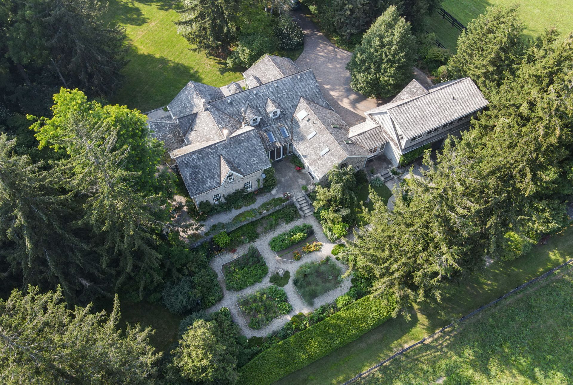 The residence is surrounded by professionally designed English gardens and lawns.
