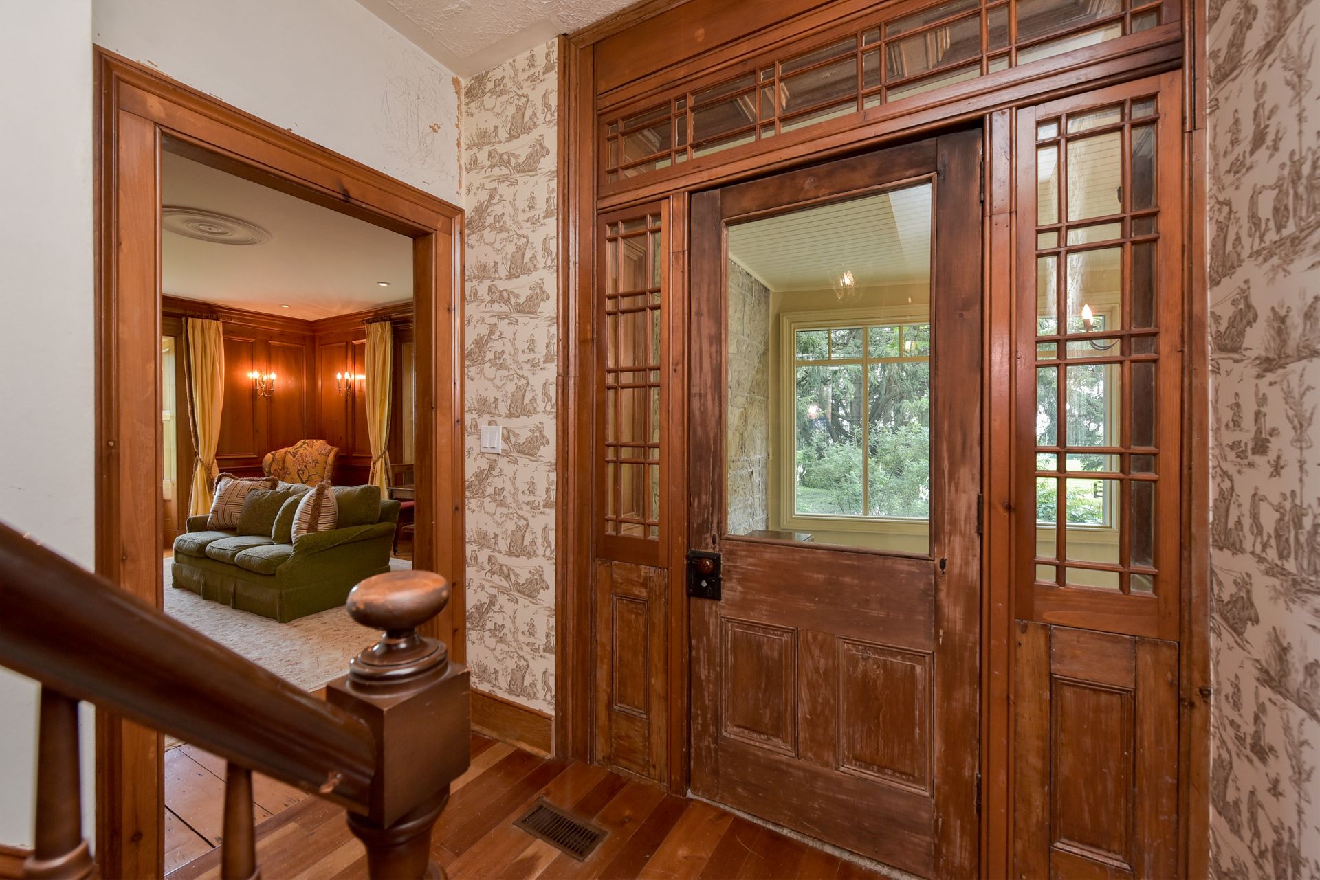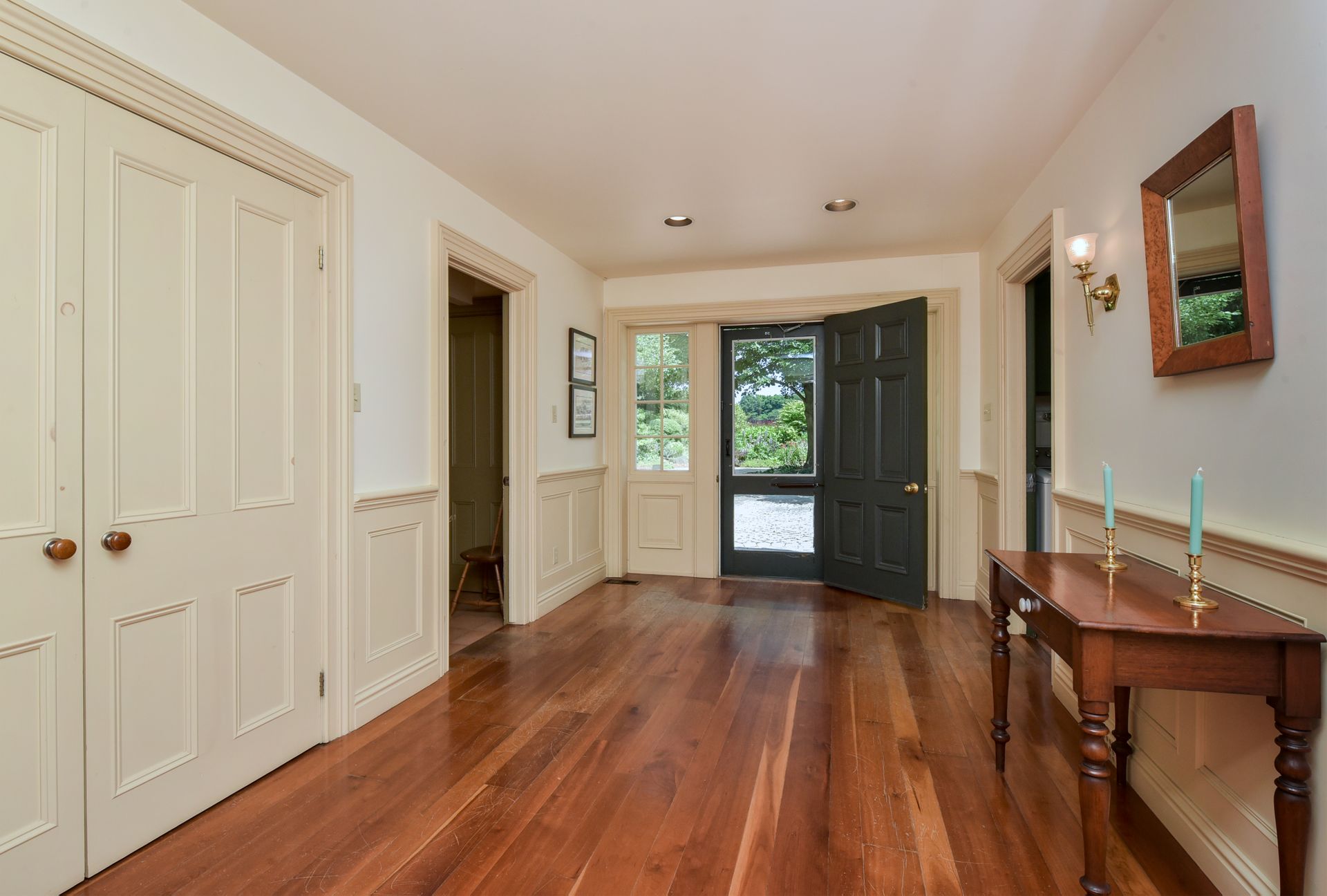 There is a hardwood forest with walking and cross-country trails. The surrounding 35 acres are cultivated by a tenant farmer.