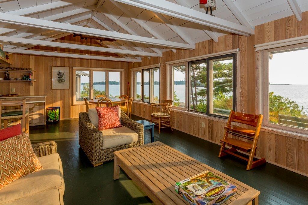Sited on a rock promontory above the main and master, the guest cabin too has unobstructed views.  It offers two bedrooms and a shared 3 pc. bath.