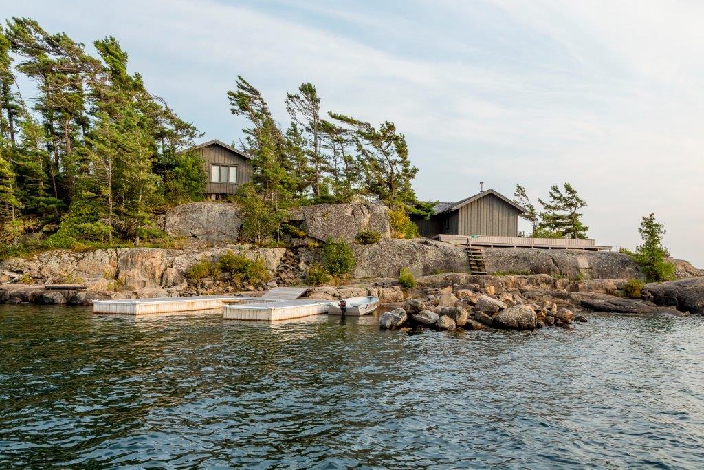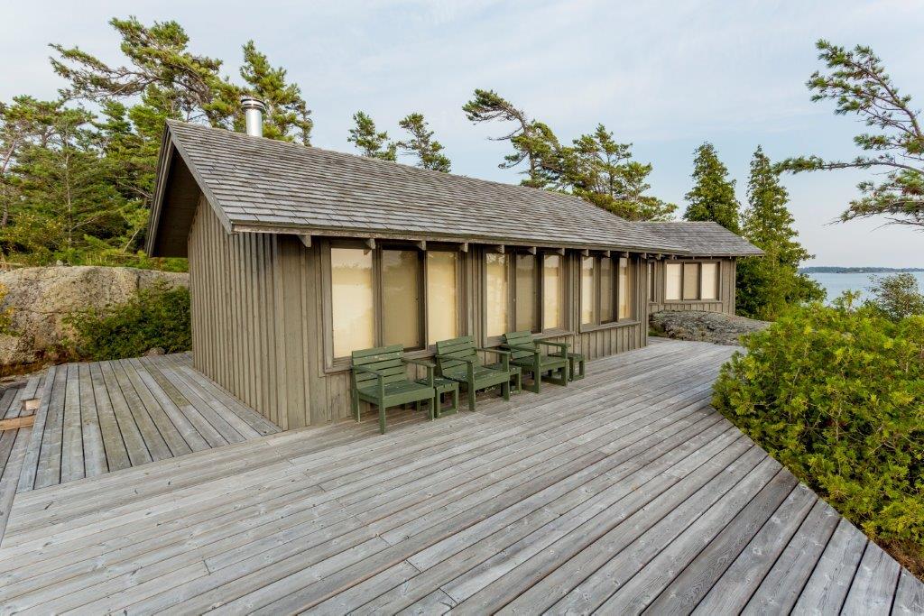 The three cabins are compact and simple in their layout and construction accentuating the primal Georgian Bay experience; smooth Pre-Cambrian sloping rock and sheer granite faces, wind contorted pines, vast water, a huge, ever changing horizon, and the utterly breathtaking views.