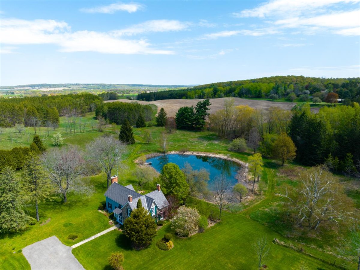 A storybook setting! 10 minutes to Schomberg. An original Ontario stone house with board & batten addition set alongside a spring-fed pond with forested hills and open meadows! A charming 3-bay garage with loft and a century bank barn. This is what you have been waiting for! 60+ acres with miles of trails. Charming 3-bedroom 3 bathroom home with wide-board floors, beamed ceilings and many historic touches.