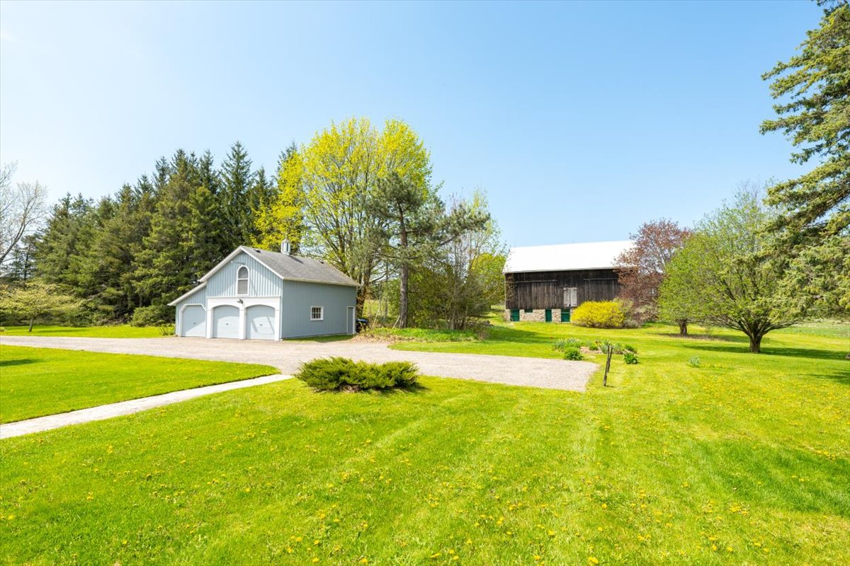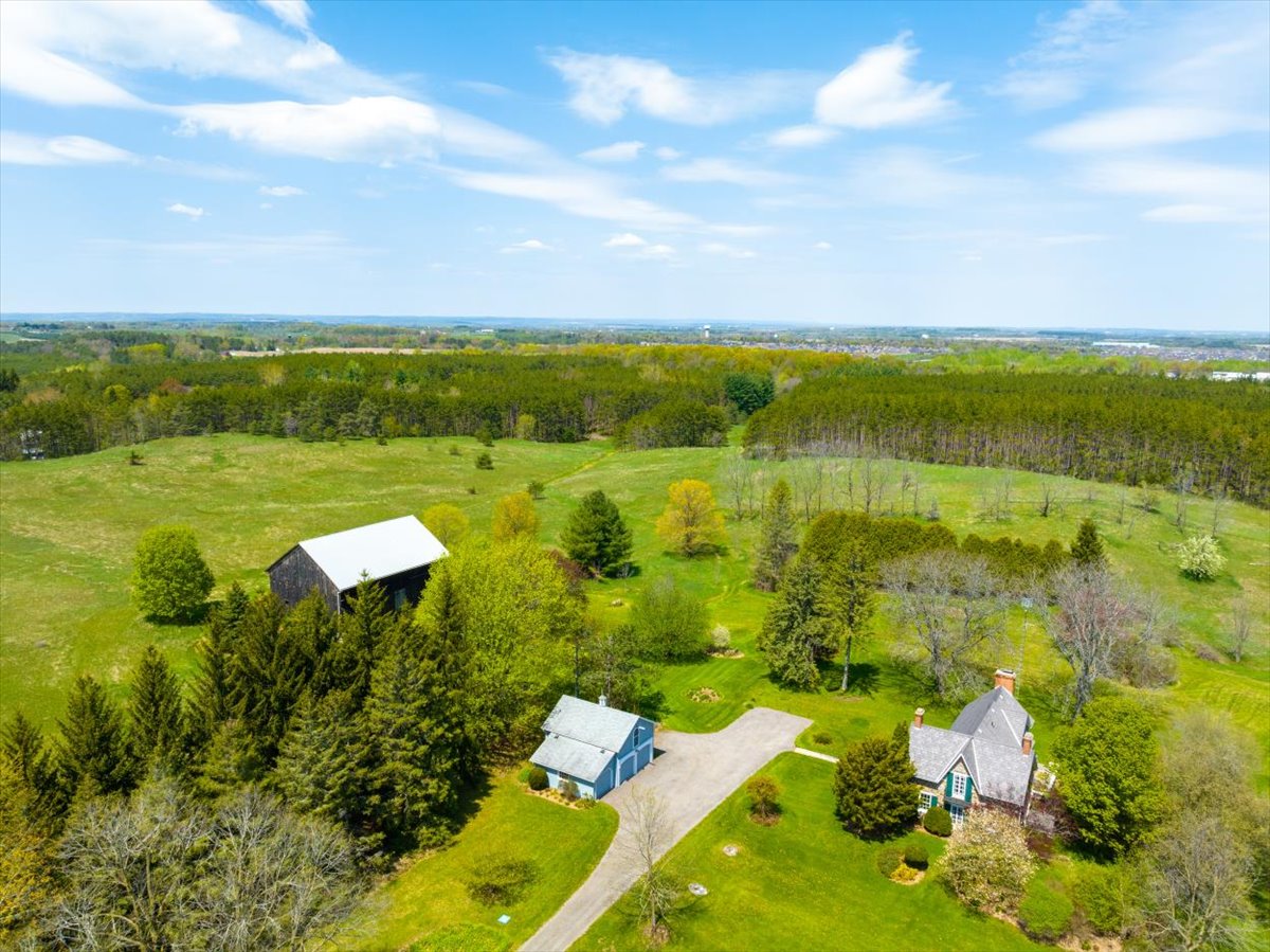 The property spans over 60 acres with maintained trails, a pond with dock, a 3-bay garage with loft and a large century old bank barn. The property is on a paved road 10 mins from Hwy 9/27 and just north of Tottenham airport.