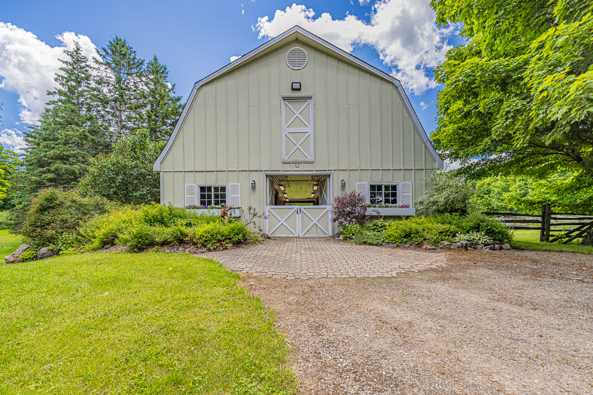 Across the driveway from the home is the large 3-bay garage with automatic doors. The extra-deep garage offers room for additional storage. The 6-stall stable has a heated tack room, feed room, and a large loft for hay storage. There are multiple large paddocks well placed off the west side of the stable. The stable was constructed by the noted barn builder, Dutch Masters Construction.