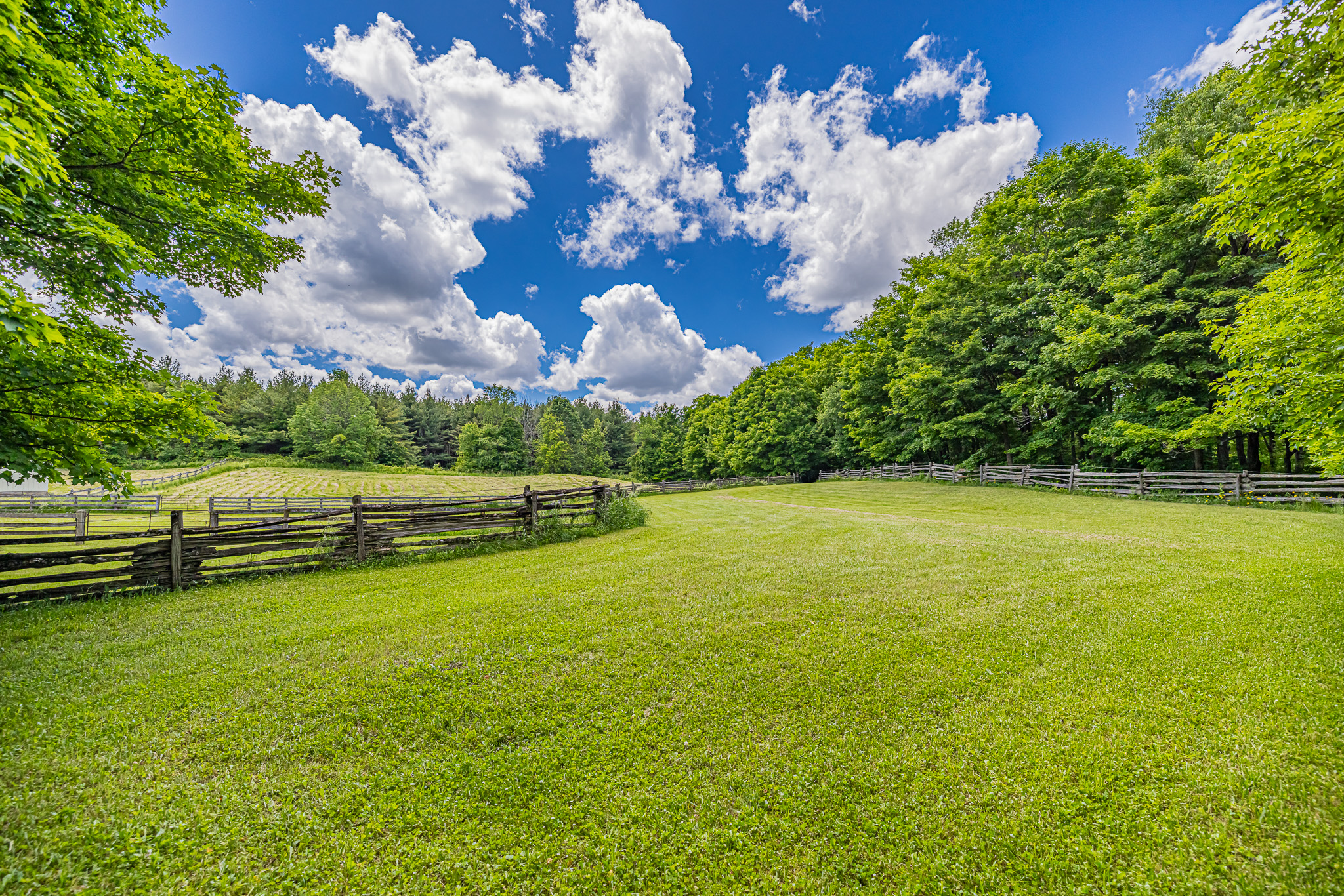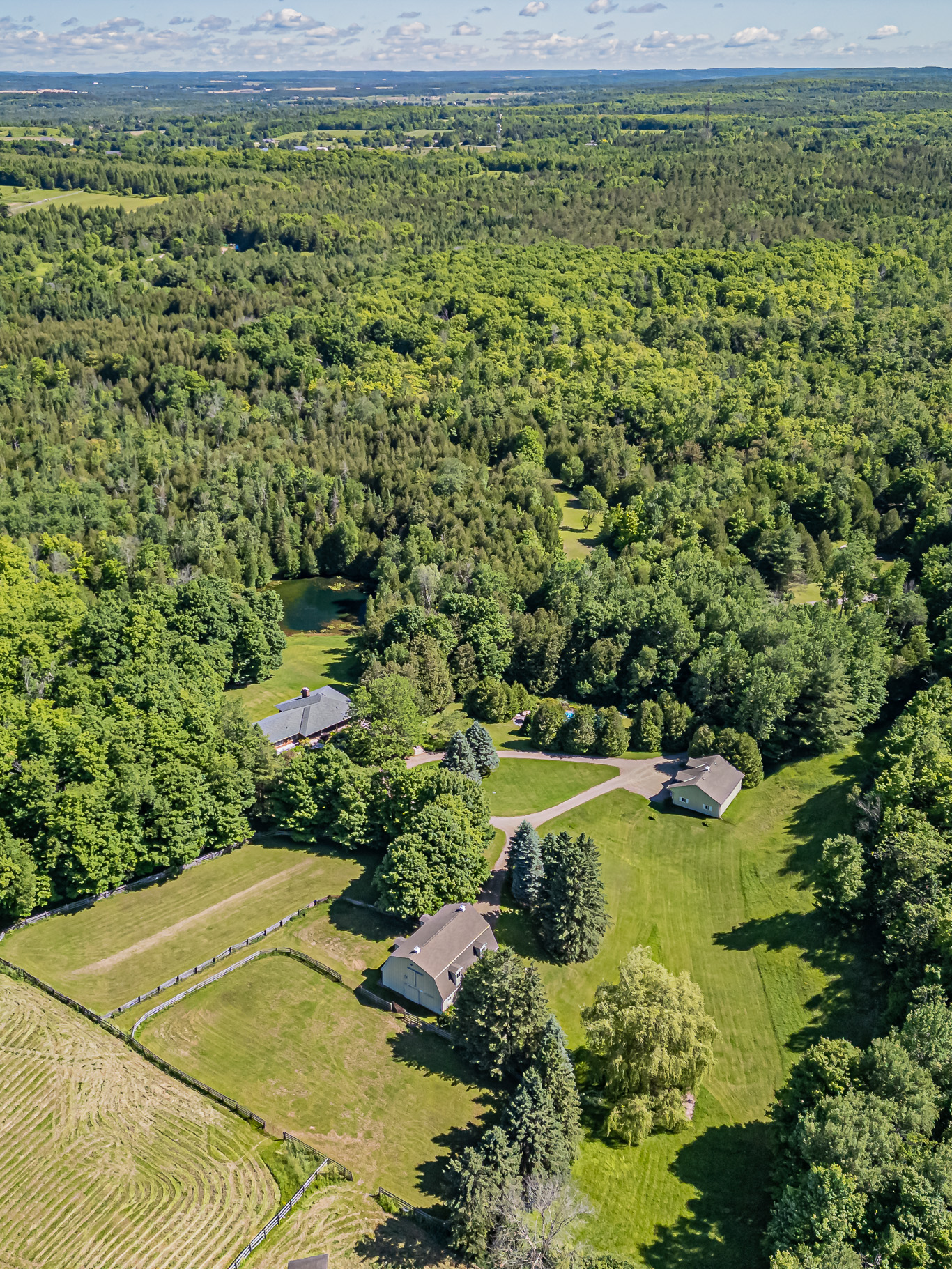 Adjoining the property along the south side is an additional lot of 50+ acres with large hayfields, mature trees, miles of trails and additional paddock lands. This second lot can have another home, barn, and outbuildings erected or just add acreage to the main lot of Tanglewood Farms. This property has over 1/4 km of road frontage on the west side of the Sixth Line. The land is rolling in nature with very useable acreage offering long views over the hills of Erin. A unique opportunity to acquire side-by-side separately deeded parcels. This additional lot can be acquired for $1,700,000 plus HST.