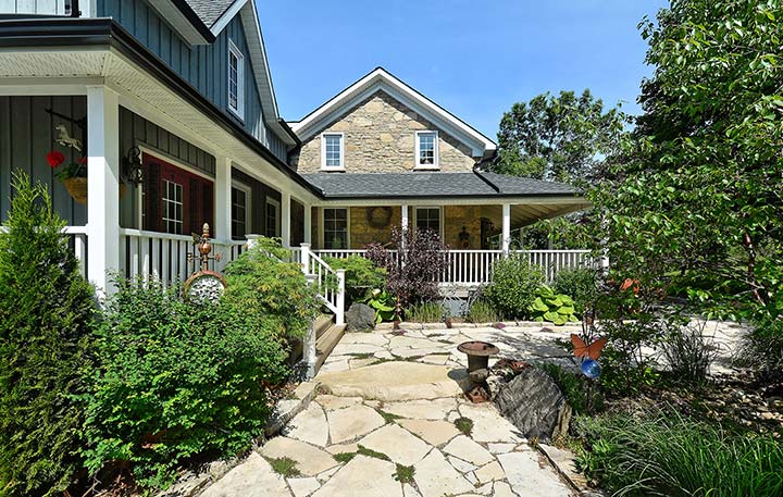 Just outside of Hillsburgh, 30 minutes north of Mississauga is a fully restored, west facing 1835 stone house with a custom built addition. Modern upgrades throughout – hardwood and stone flooring, wide hallways, high speed internet and gorgeous entertainment area. The open concept kitchen overlooks the spring fed pond in addition to the 84 acres of forest and farmland which ensures continued privacy.