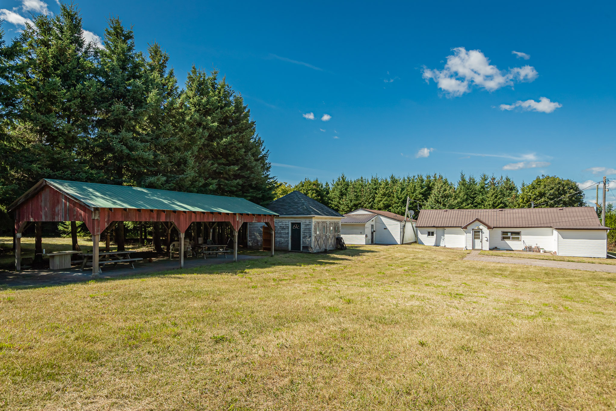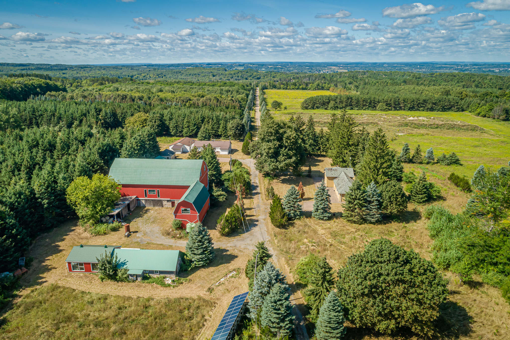 The bank barn is steel sided with steel roof and has undergone a significant renovation. The barn measures approximately 80 x 40 ft plus an addition of 40 x 20 ft. To the east of the barn is an additional workshop with significant storage space.