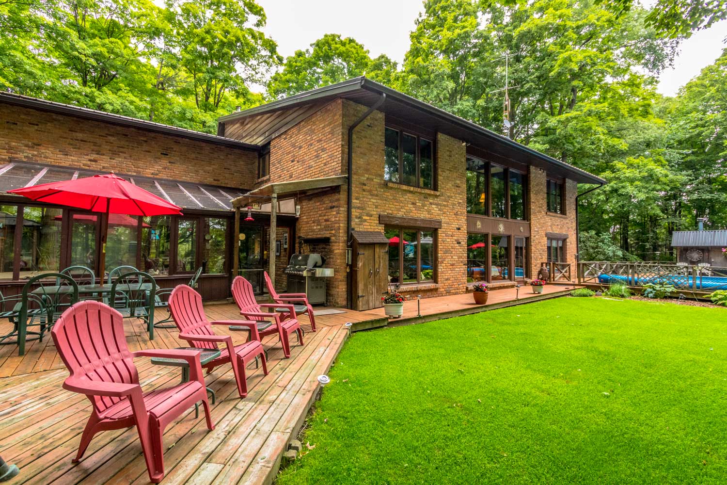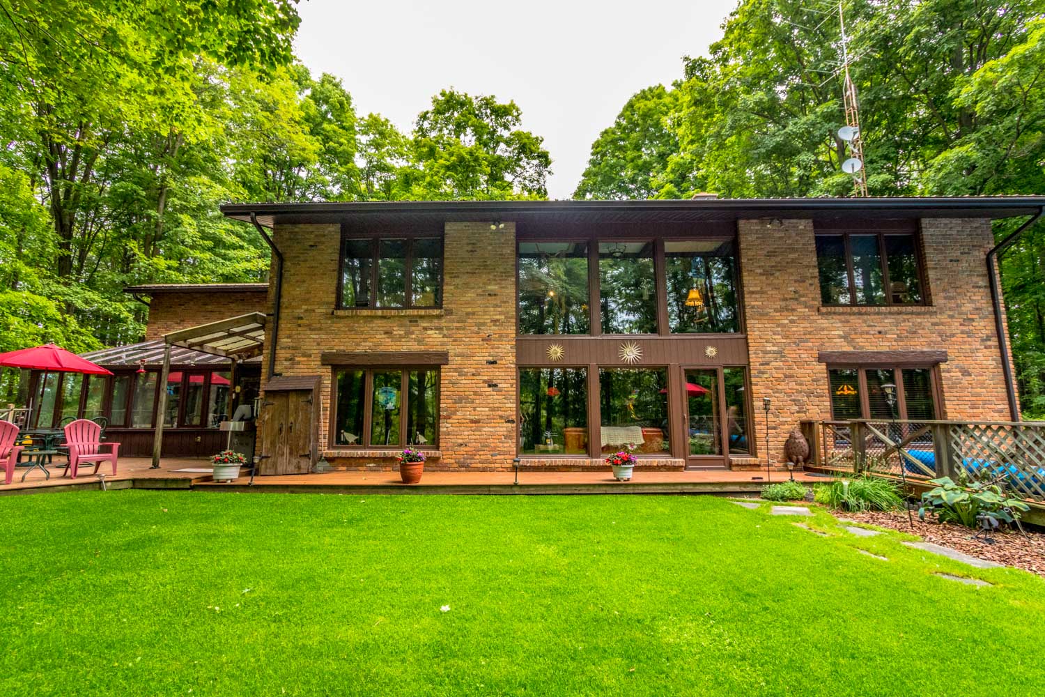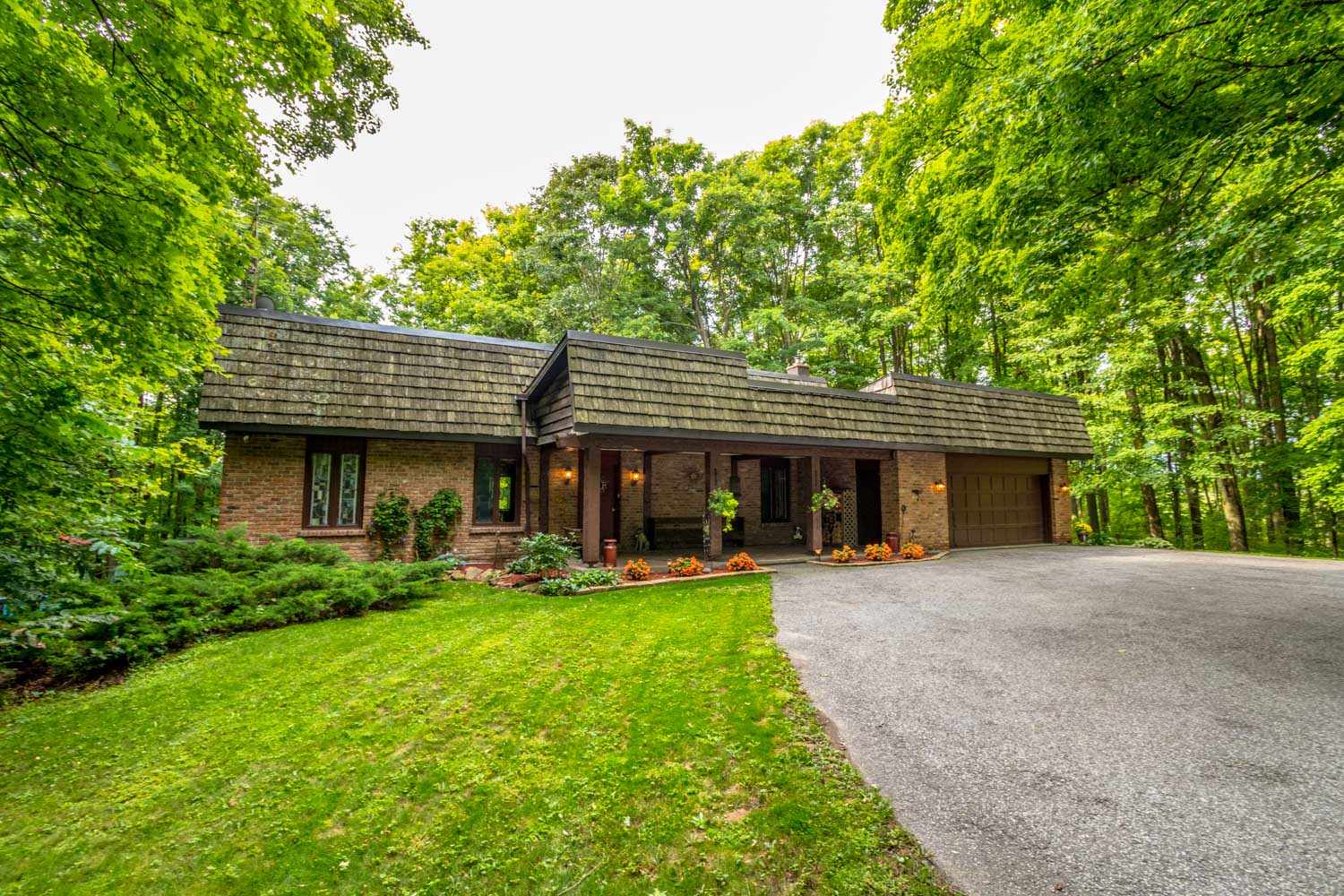 Nestled on private 15+ acres, amongst a hardwood forest is this custom contemporary south facing 5 bedroom house overlooking a spring fed pond. The character filled house is an entertainers paradise with walk-out from lower level.
